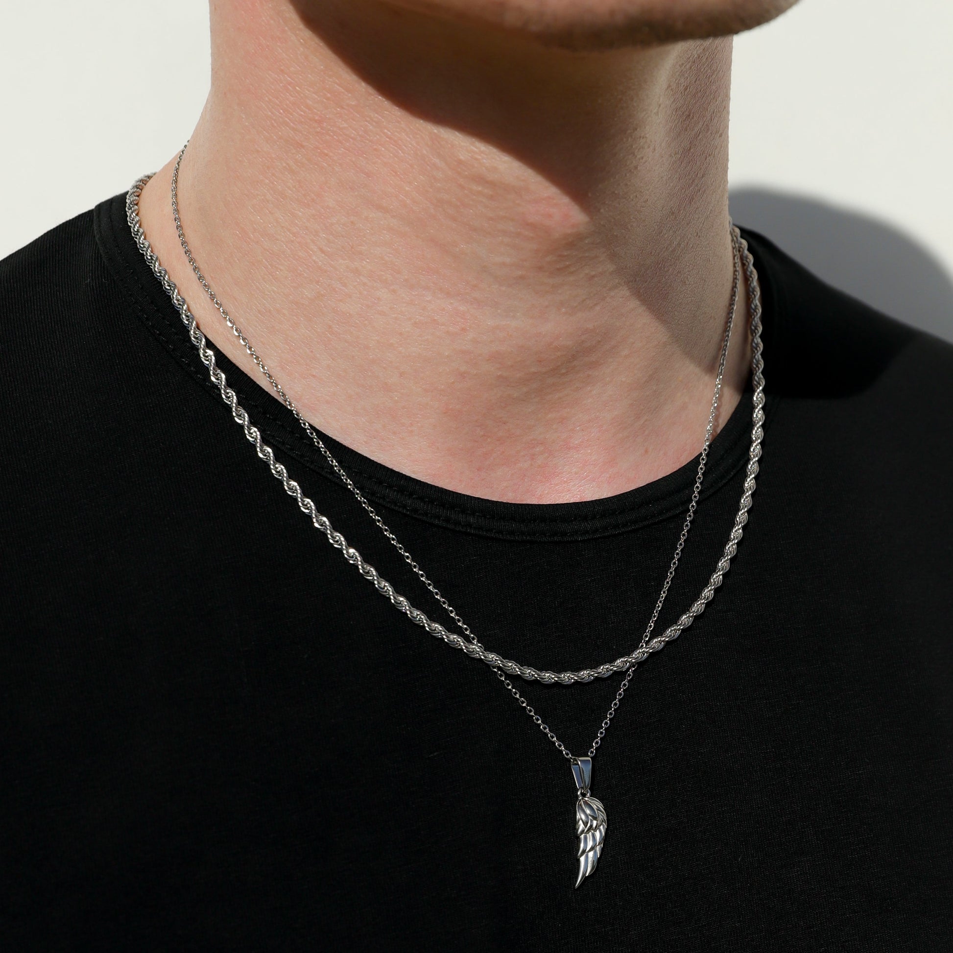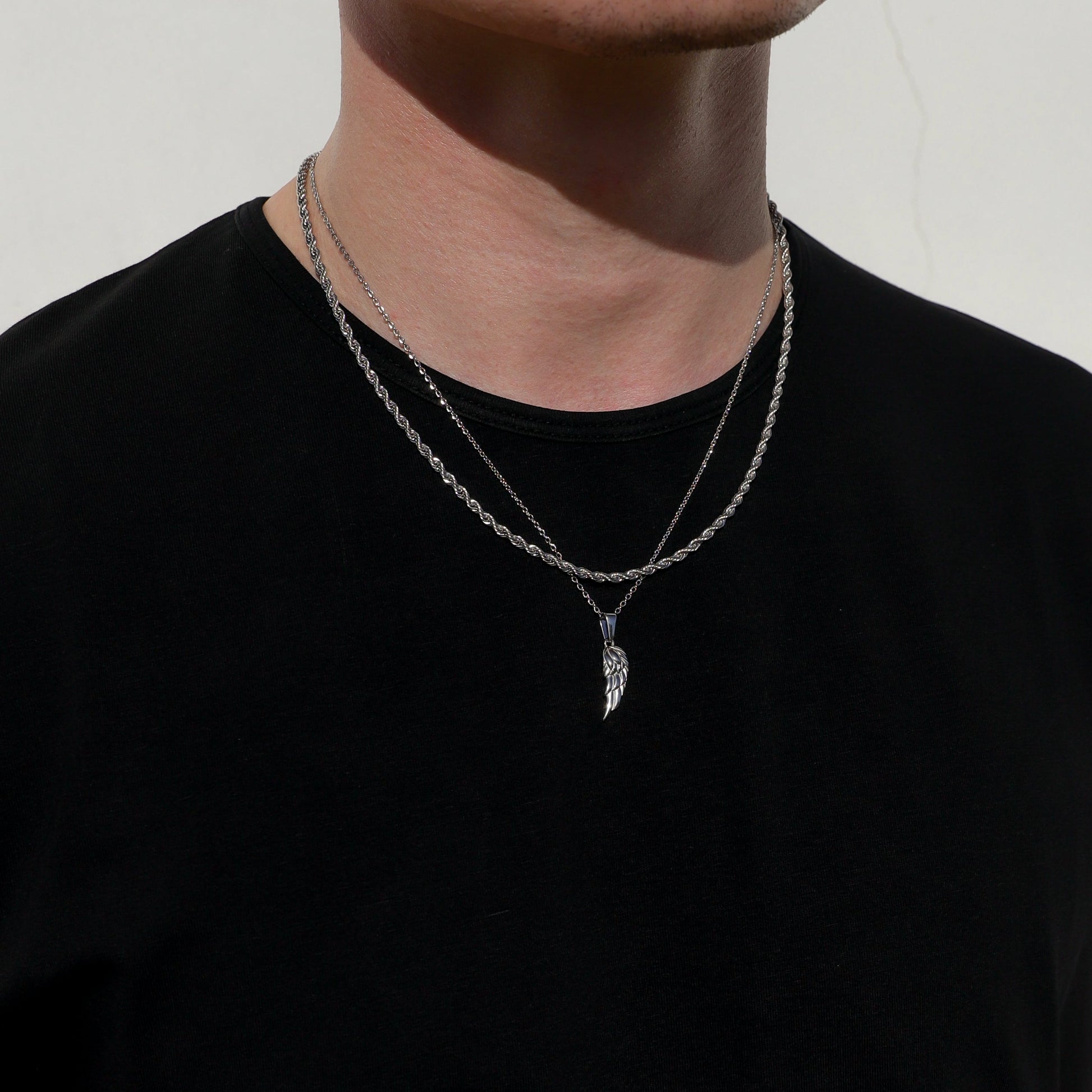 Our Angel Wing necklace and Twist Rope Chain are made from Premium quality 316L stainless steel. This allows the pendant and chain to be water and sweat resistant. This chain can be worn on its own as a statement or be layered with other chains from our shop.
