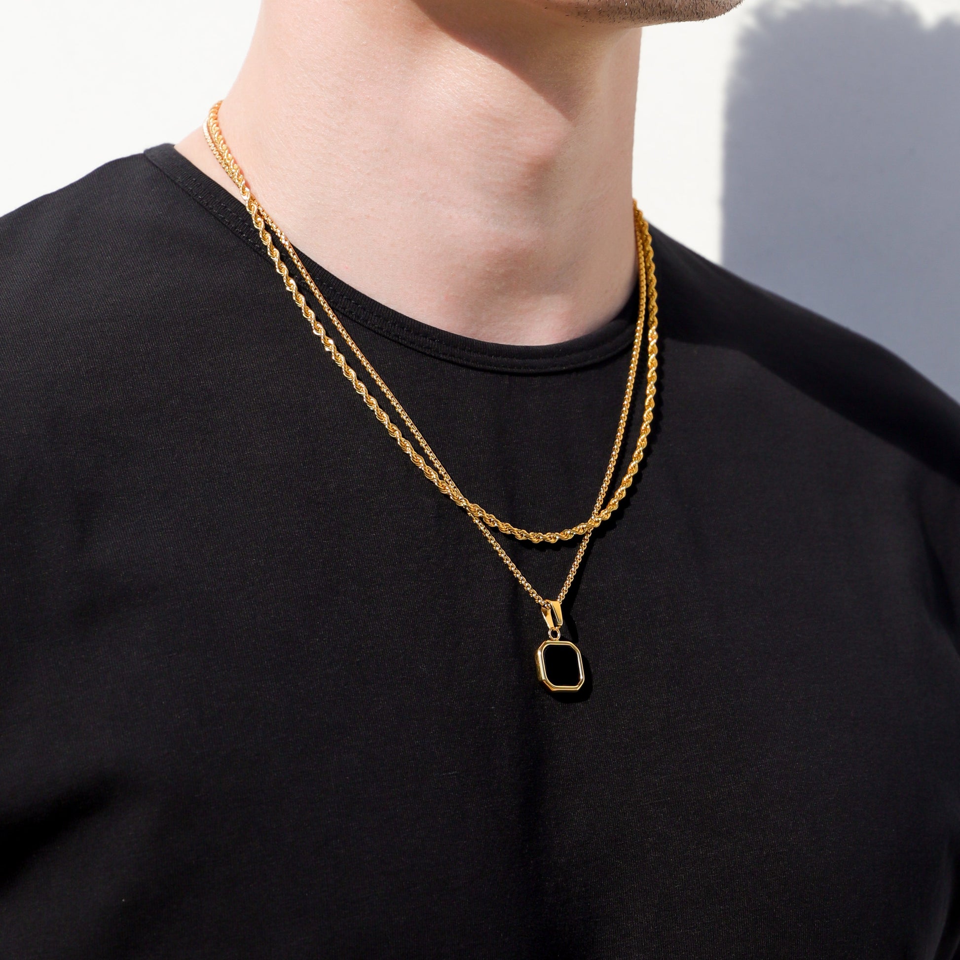 *SOLD AS A SET - Gold Black Onyx Stone Pendant and Gold Rope Chain*