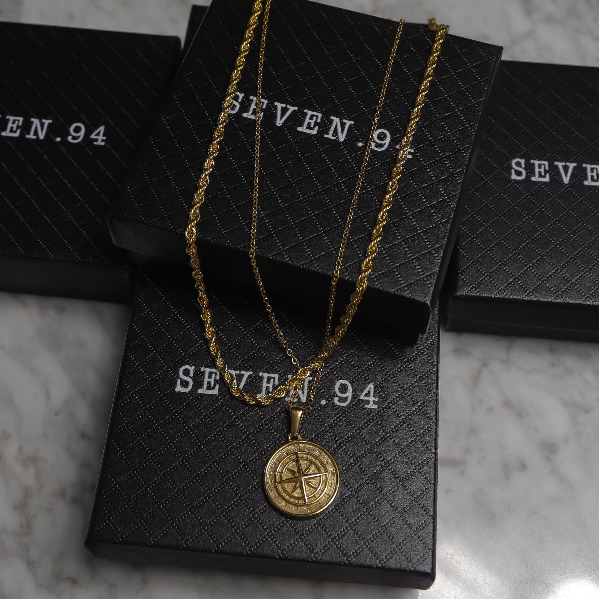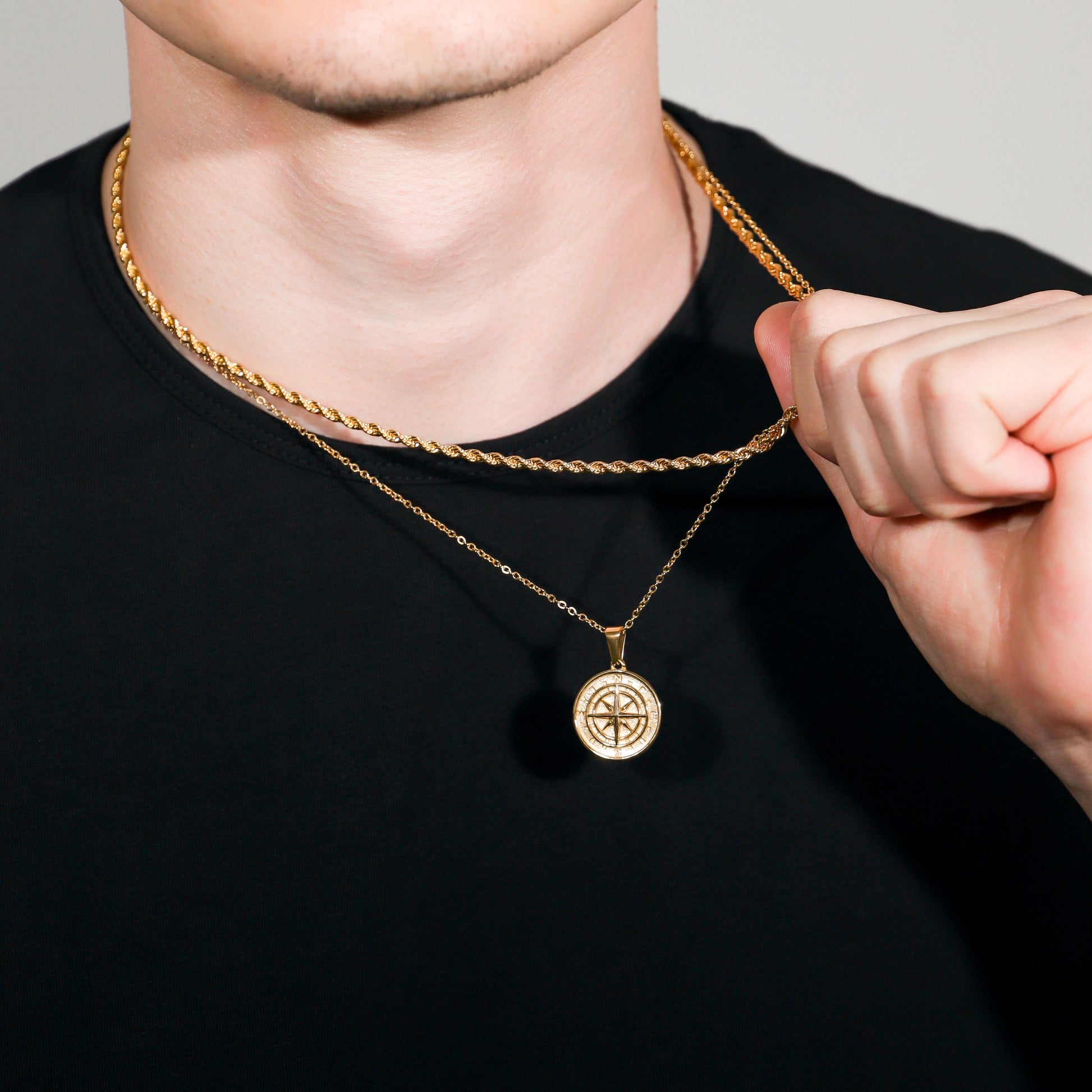 Our North Star Compass necklace and Rope chain are made from Premium quality 316L stainless steel. This allows the pendant and chain to be water and sweat resistant. This chain can be worn on its own as a statement or be layered with other chains from our shop.