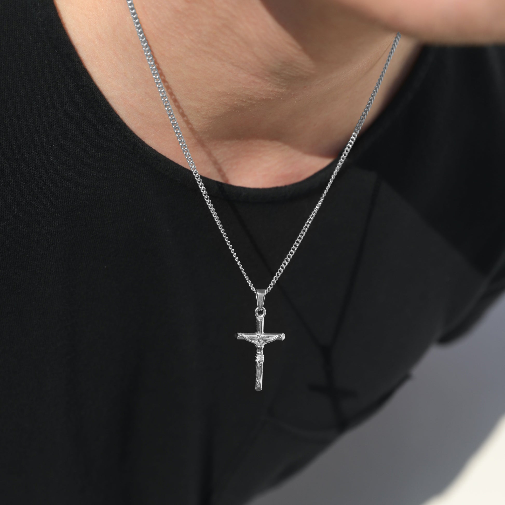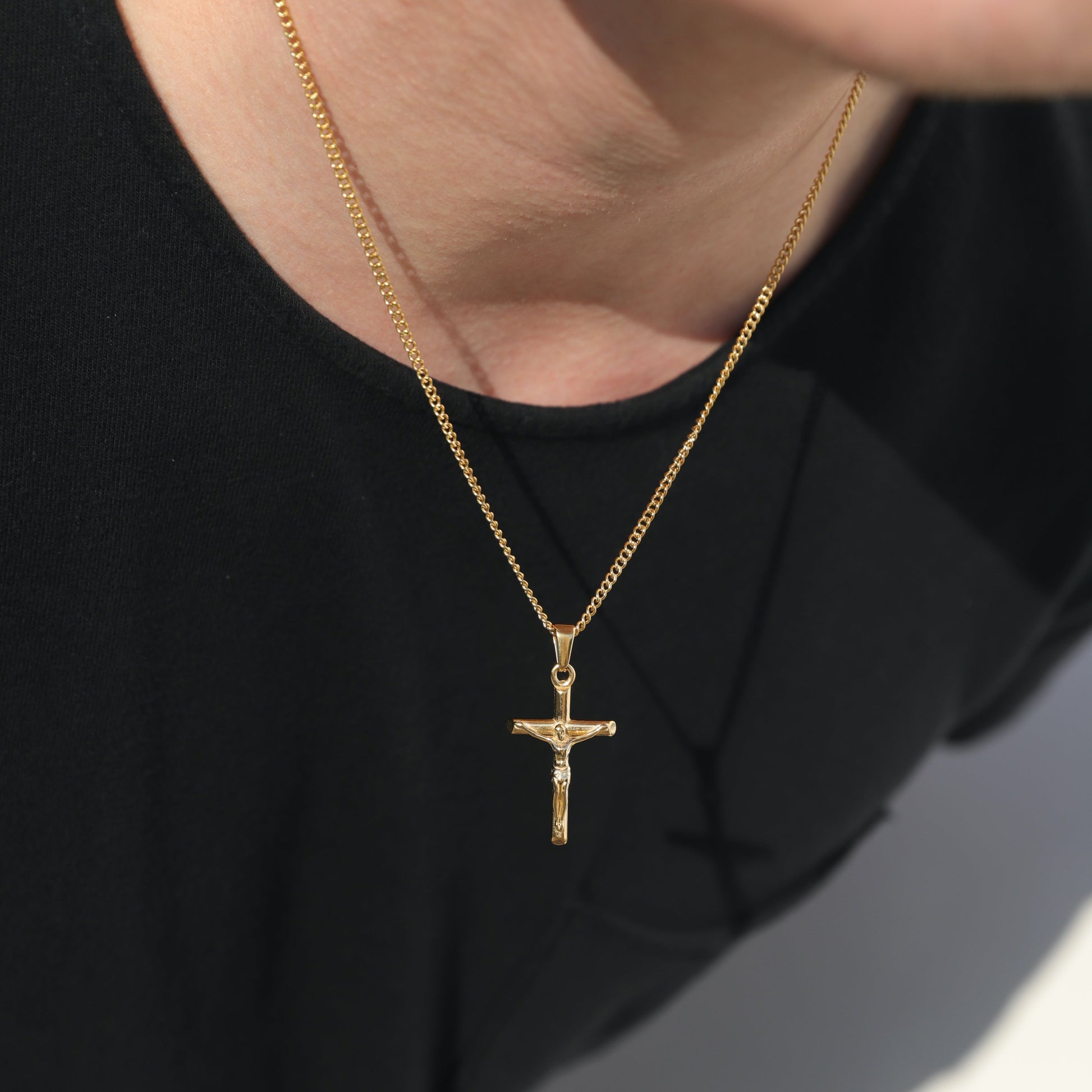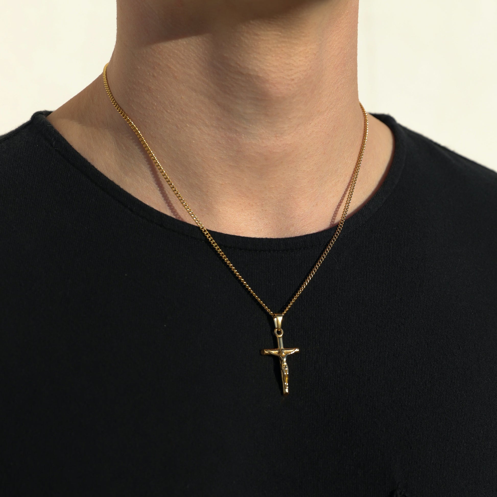 Our Crucifix cross necklace is made from Premium quality 316L stainless steel. This allows the pendant and chain to be water and sweat resistant. This chain can be worn on its own as a statement or be layered with other chains from our shop. Available in 18k Gold and Silver colors.