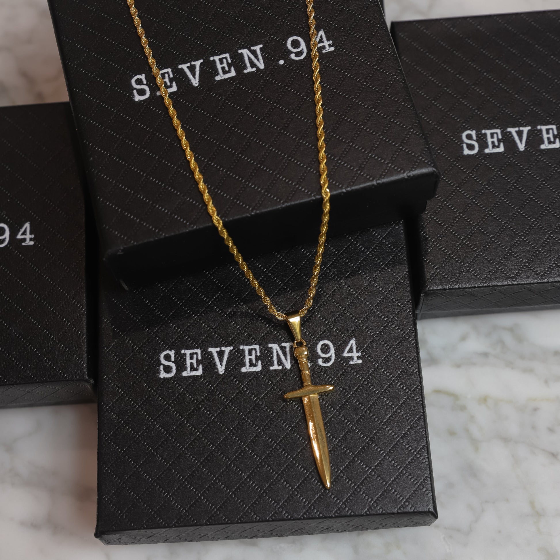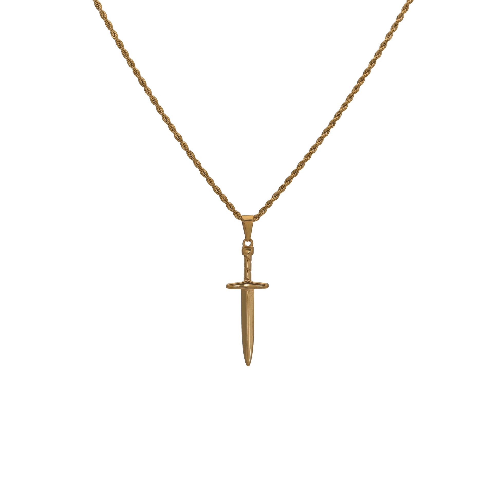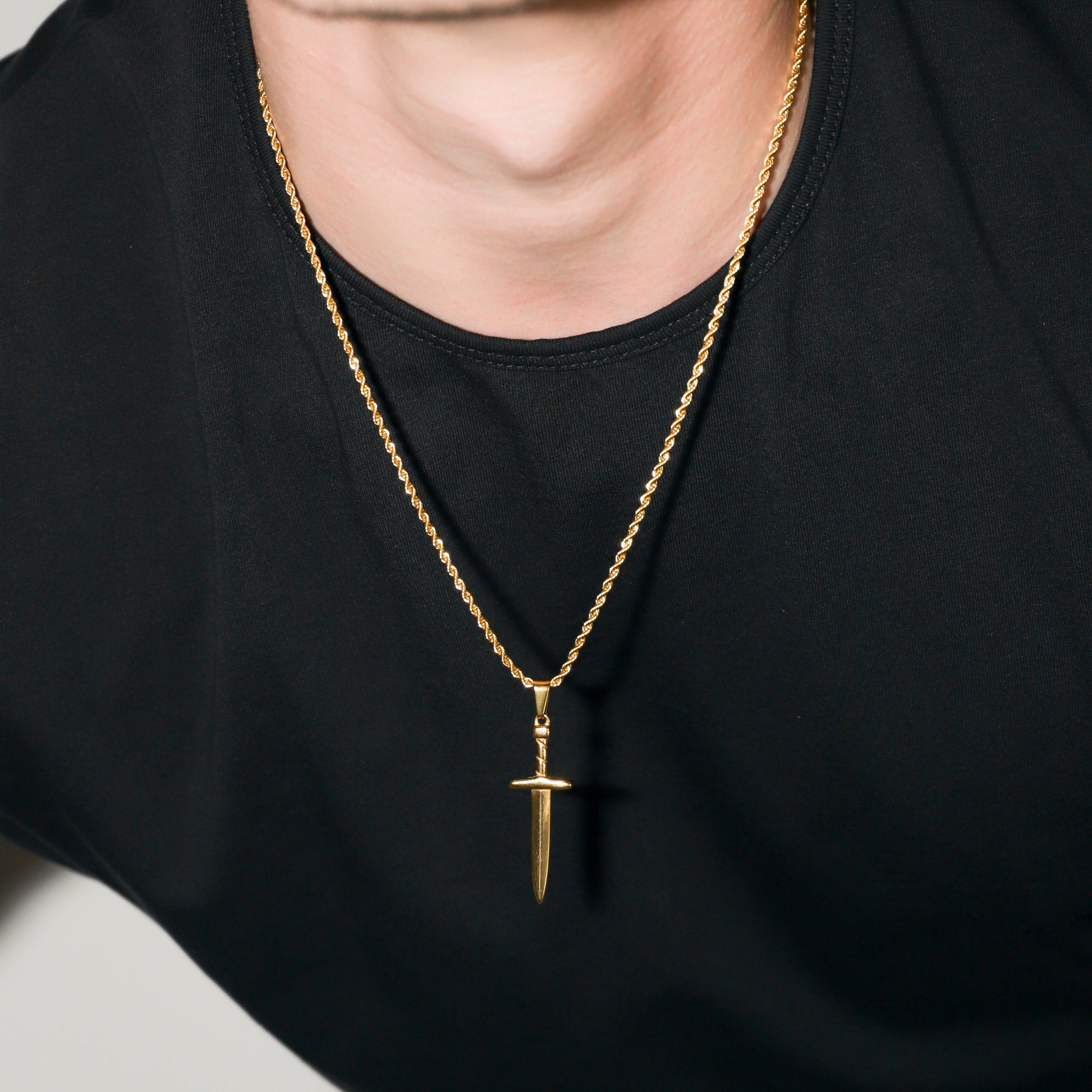 Our Gold Dagger necklace is made from Premium quality 316L stainless steel. This allows the pendant and chain to be water and sweat resistant. This chain can be worn on its own as a statement or be layered with other chains from our shop. Available in 18k Gold and Silver colors.