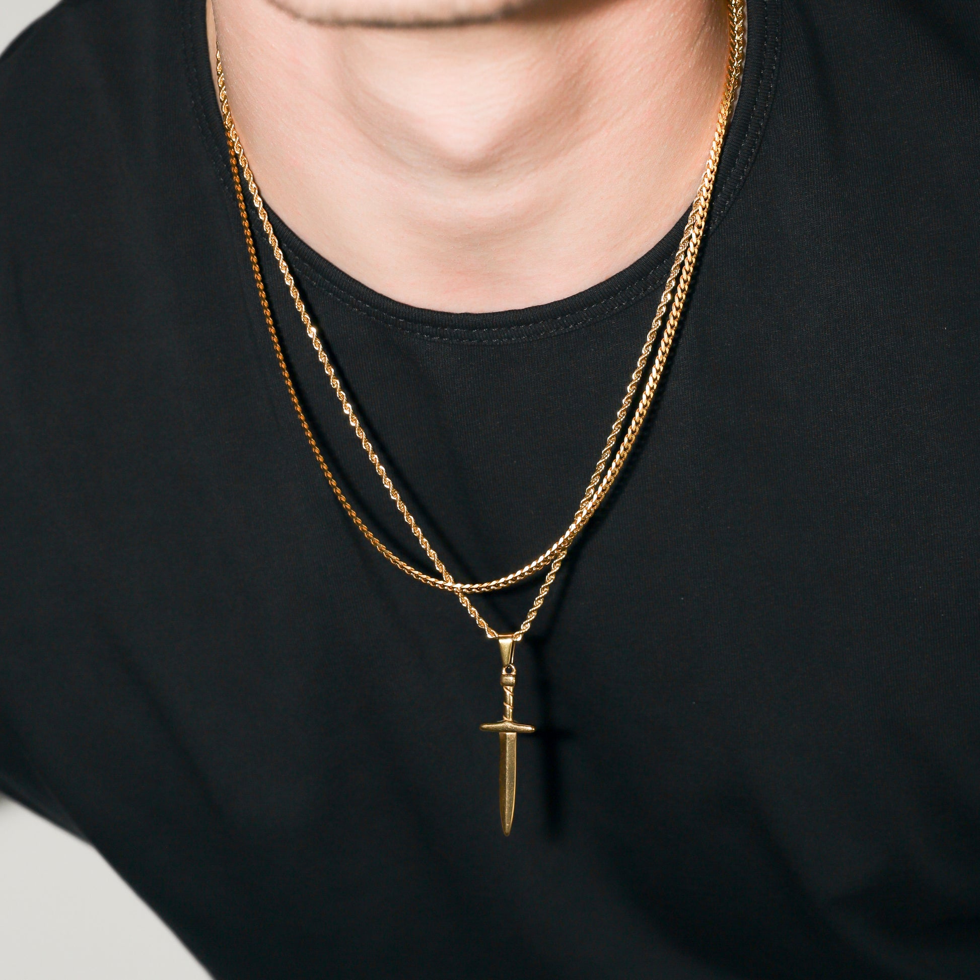 Our Gold Dagger necklace and Cuban Link Chain are made from Premium quality 316L stainless steel. This allows the pendant and chain to be water and sweat resistant. This chain can be worn on its own as a statement or be layered with other chains from our shop.