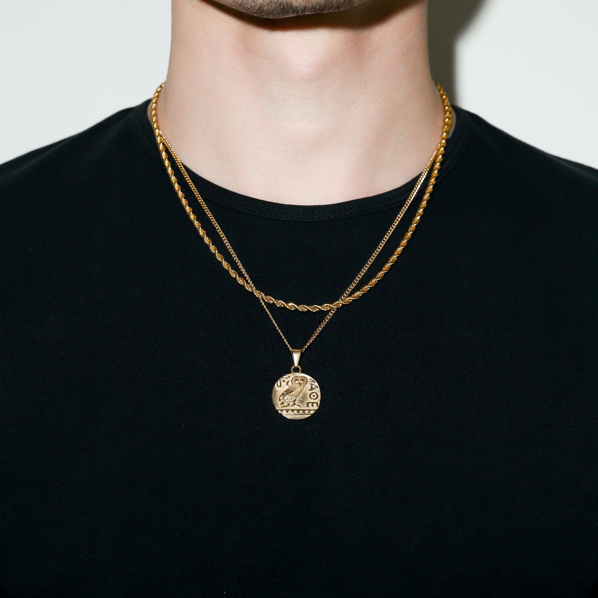 Our Greek Owl necklace is made from Premium quality 316L stainless steel. This allows the pendant and chain to be water and sweat resistant. This chain can be worn on its own as a statement or be layered with other chains from our shop.