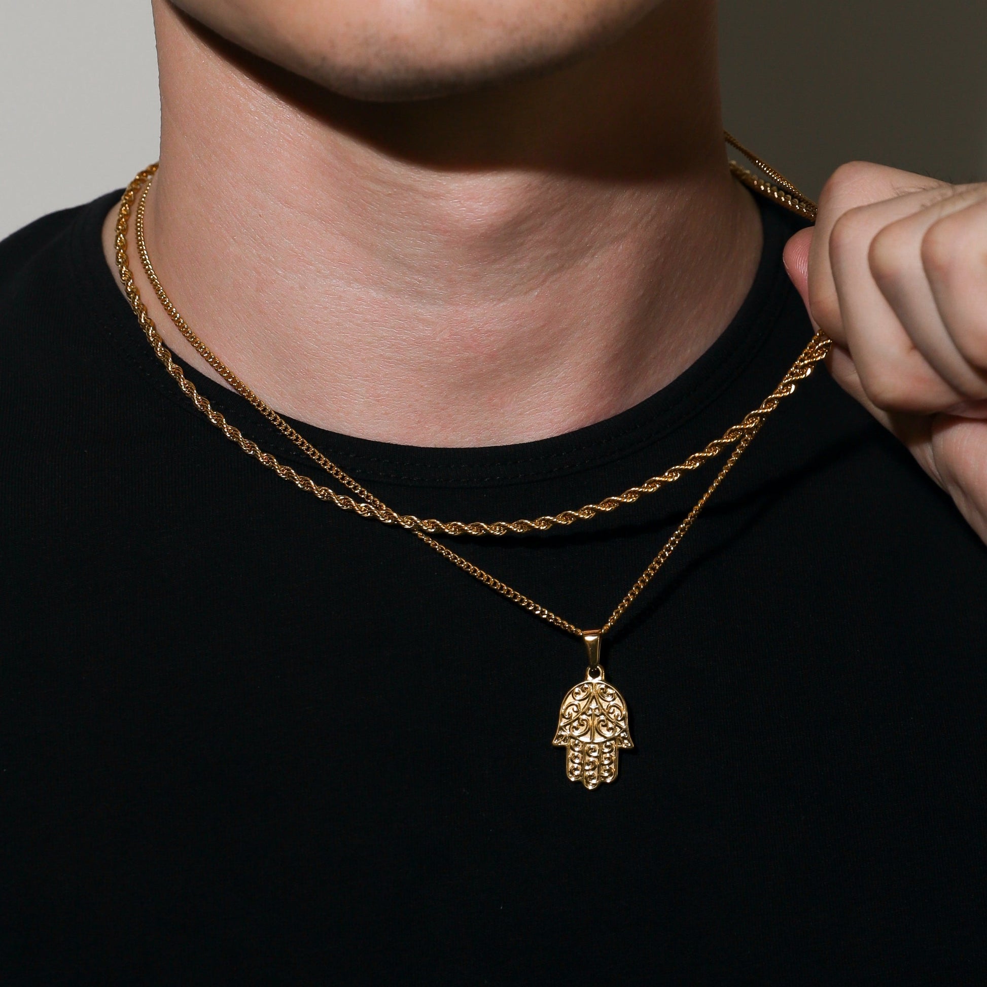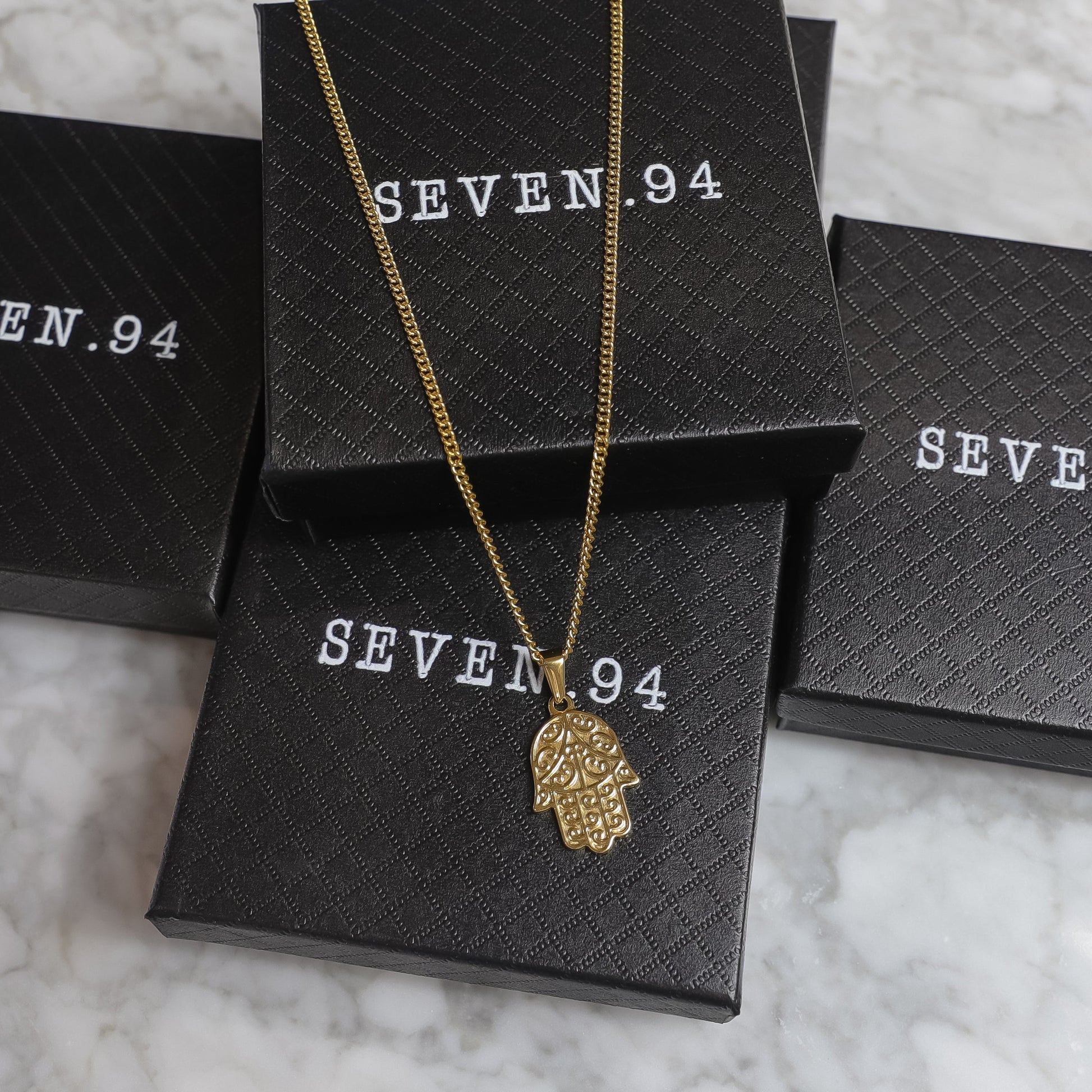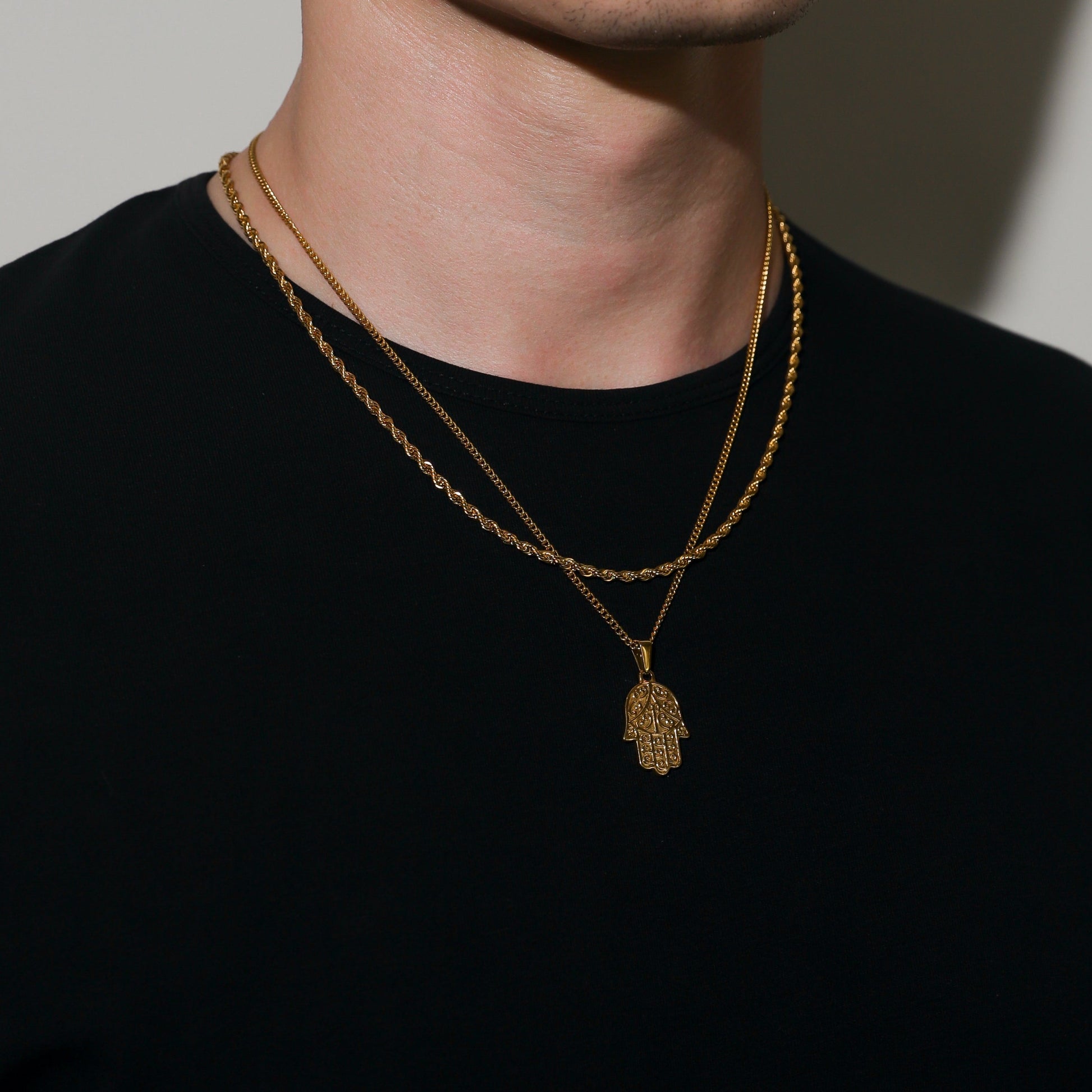 Our Gold Hamsa Pendant is made from Premium quality 316L stainless steel. This allows the pendant and chain to be water and sweat resistant. This chain can be worn on its own as a statement or be layered with other chains from our shop.