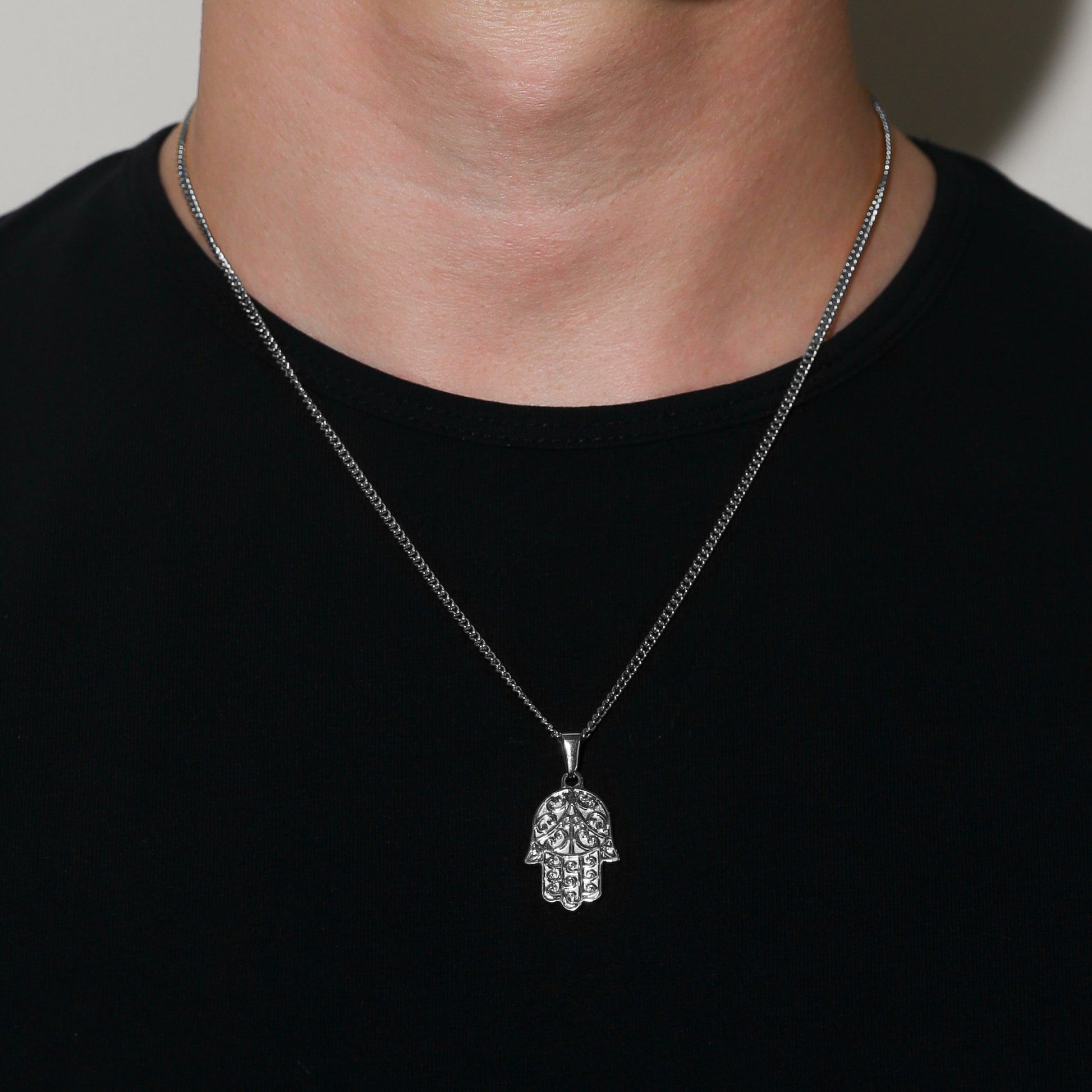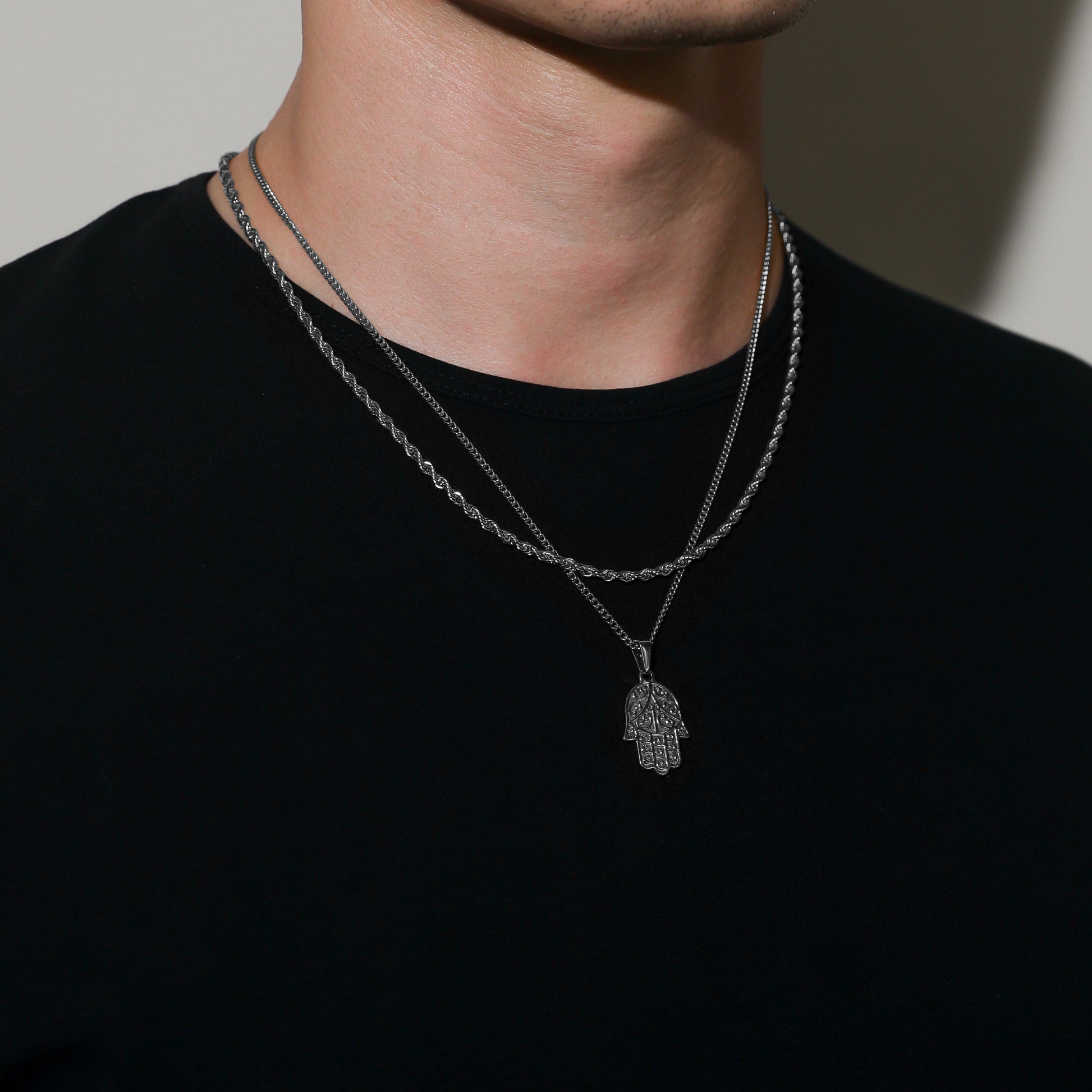 Our Hamsa Pendant necklace and Rope Chain are made from Premium quality 316L stainless steel. This allows the pendant and chain to be water and sweat resistant. This chain can be worn on its own as a statement or be layered with other chains from our shop.