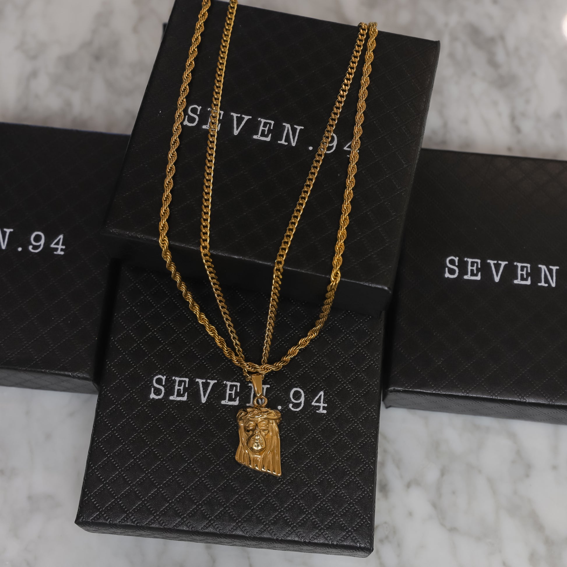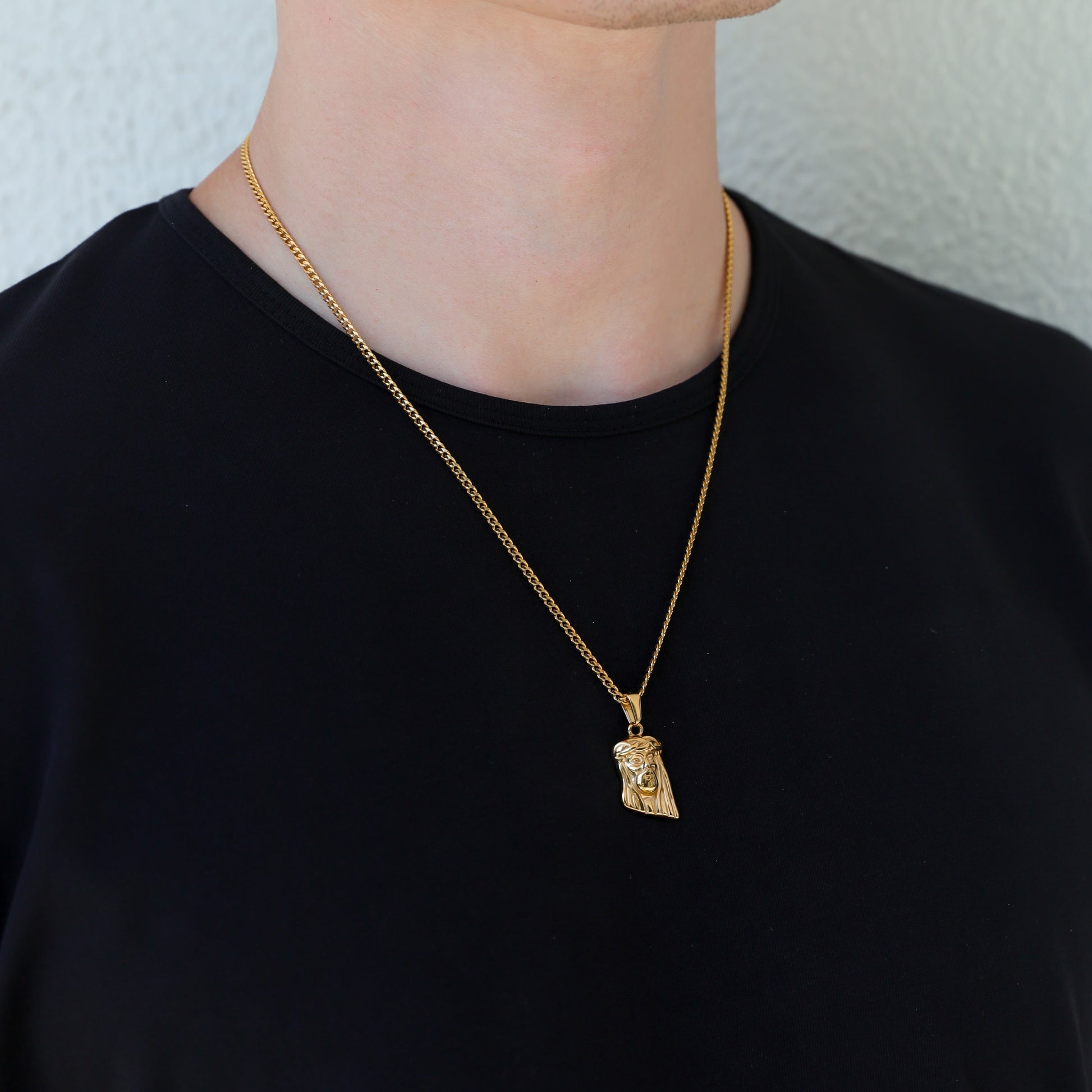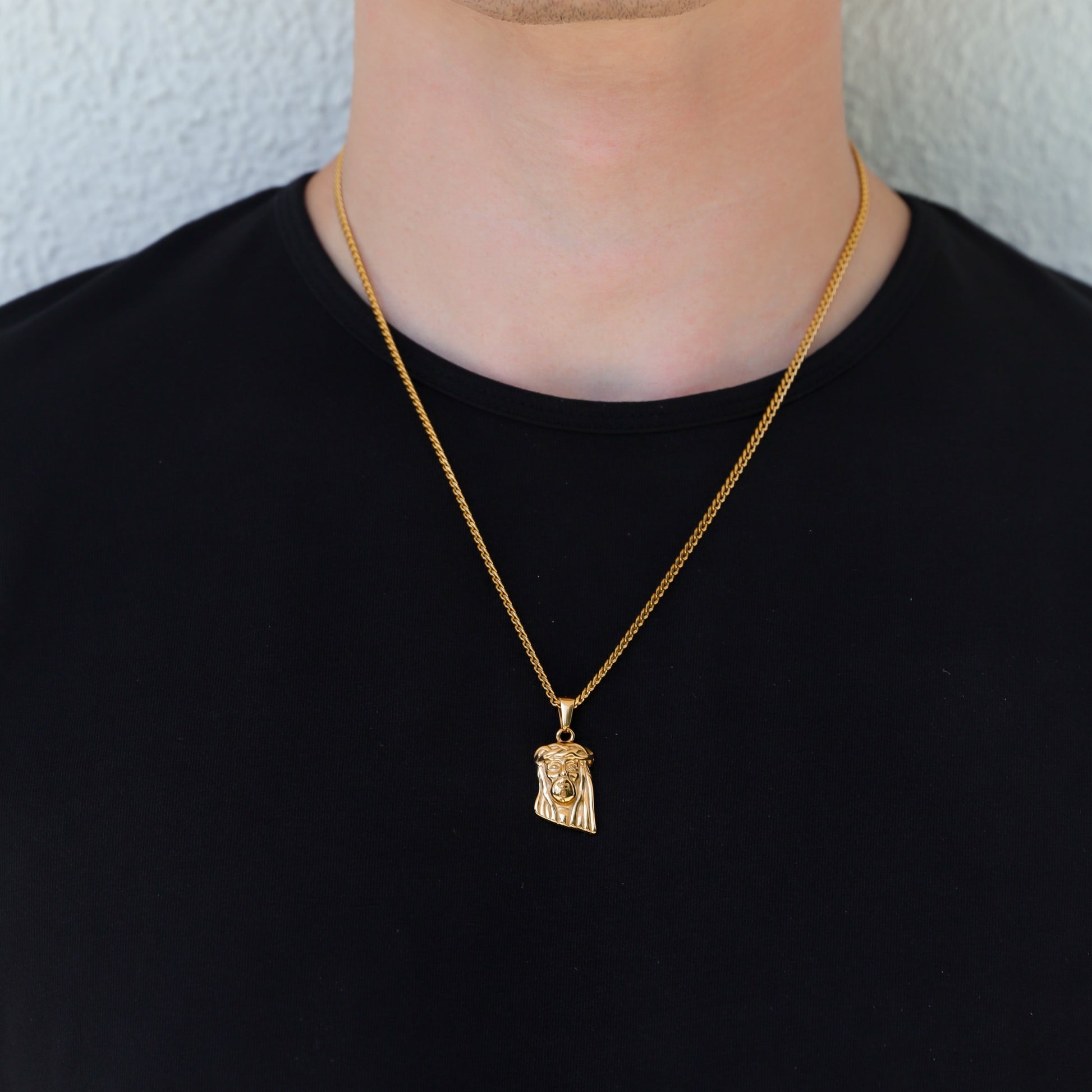 Our Jesus necklace and Rope chain are made from Premium quality 316L stainless steel. This allows the pendant and chain to be water and sweat resistant. This chain can be worn on its own as a statement or be layered with other chains from our shop.