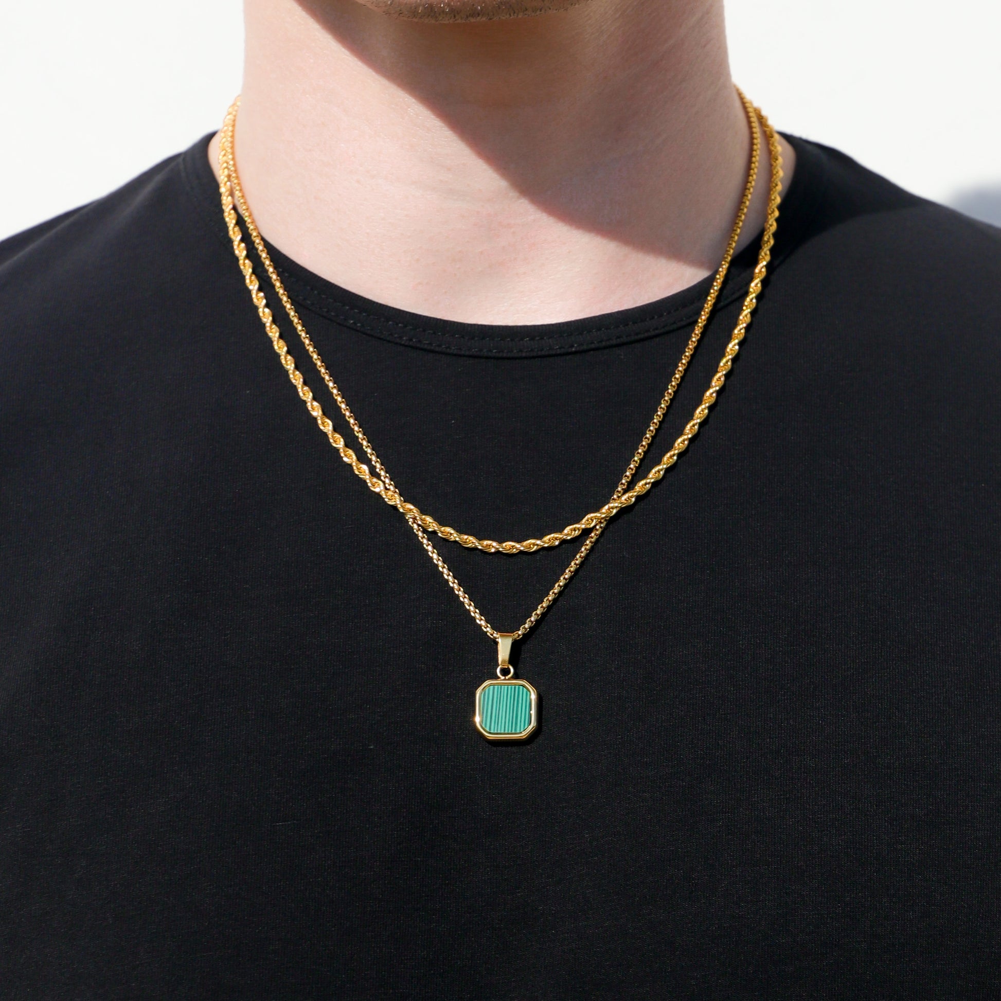 *SOLD AS A SET - Gold Malachite Stone Pendant and Gold Rope Chain*