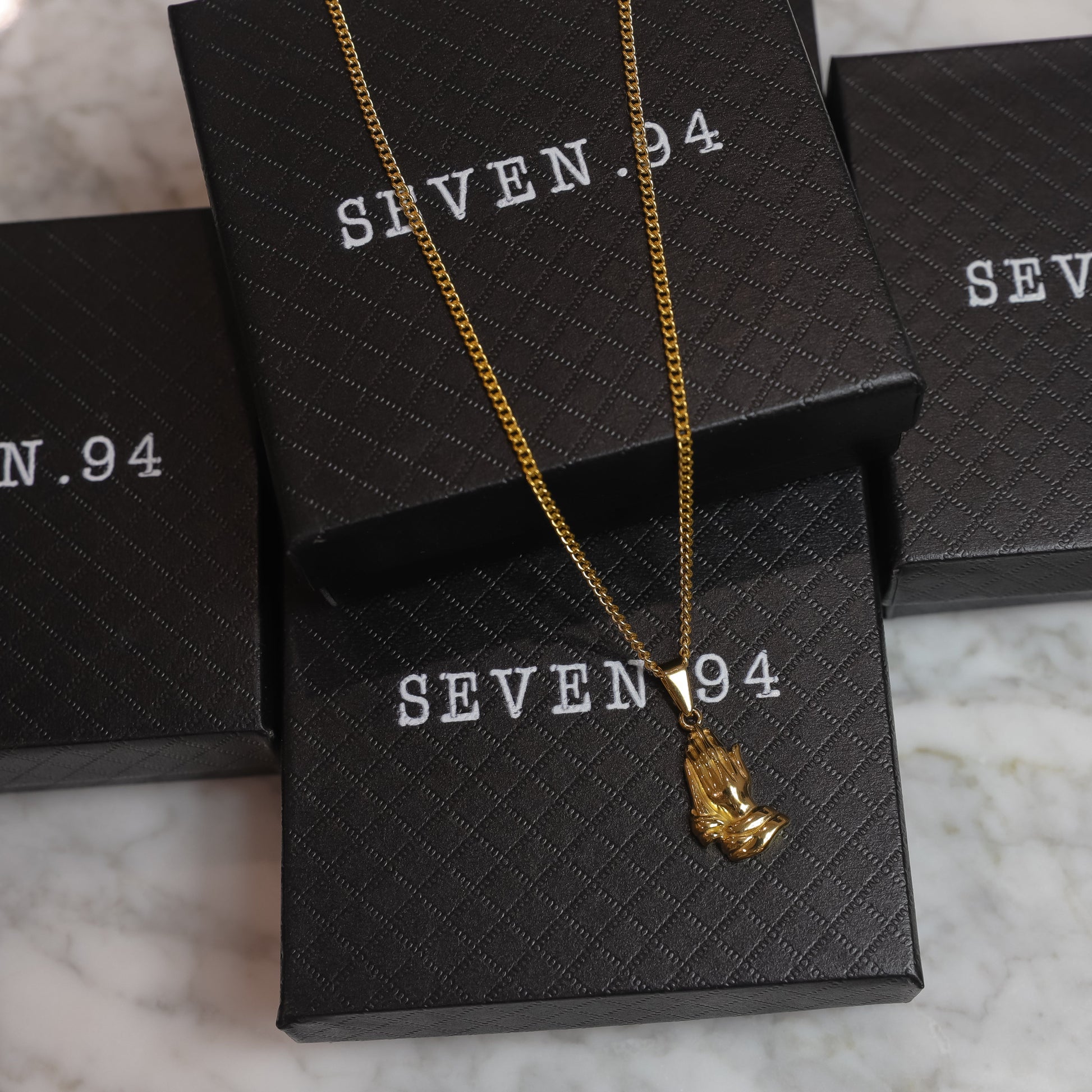 Our Lord's Prayer Hands pendant is made from Premium quality 316L stainless steel. This allows the pendant and chain to be water and sweat resistant. This chain can be worn on its own as a statement or be layered with other chains from our shop.