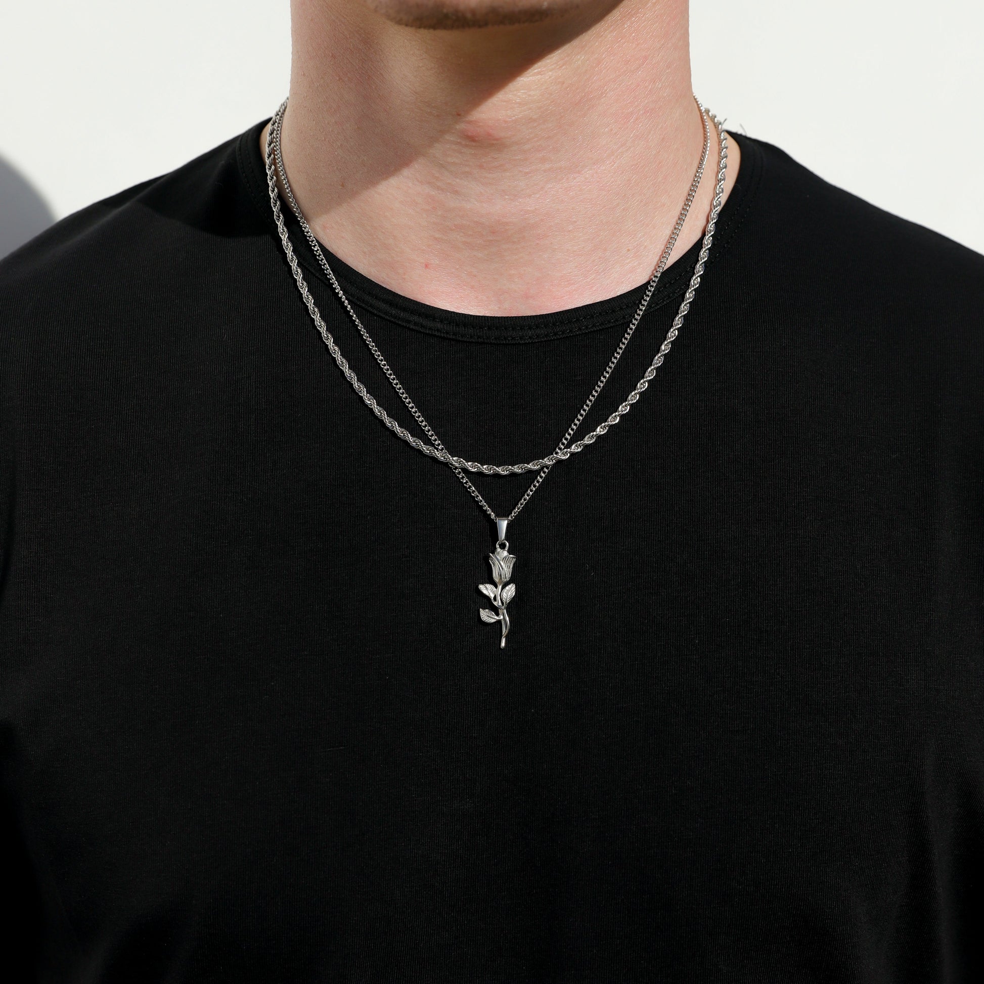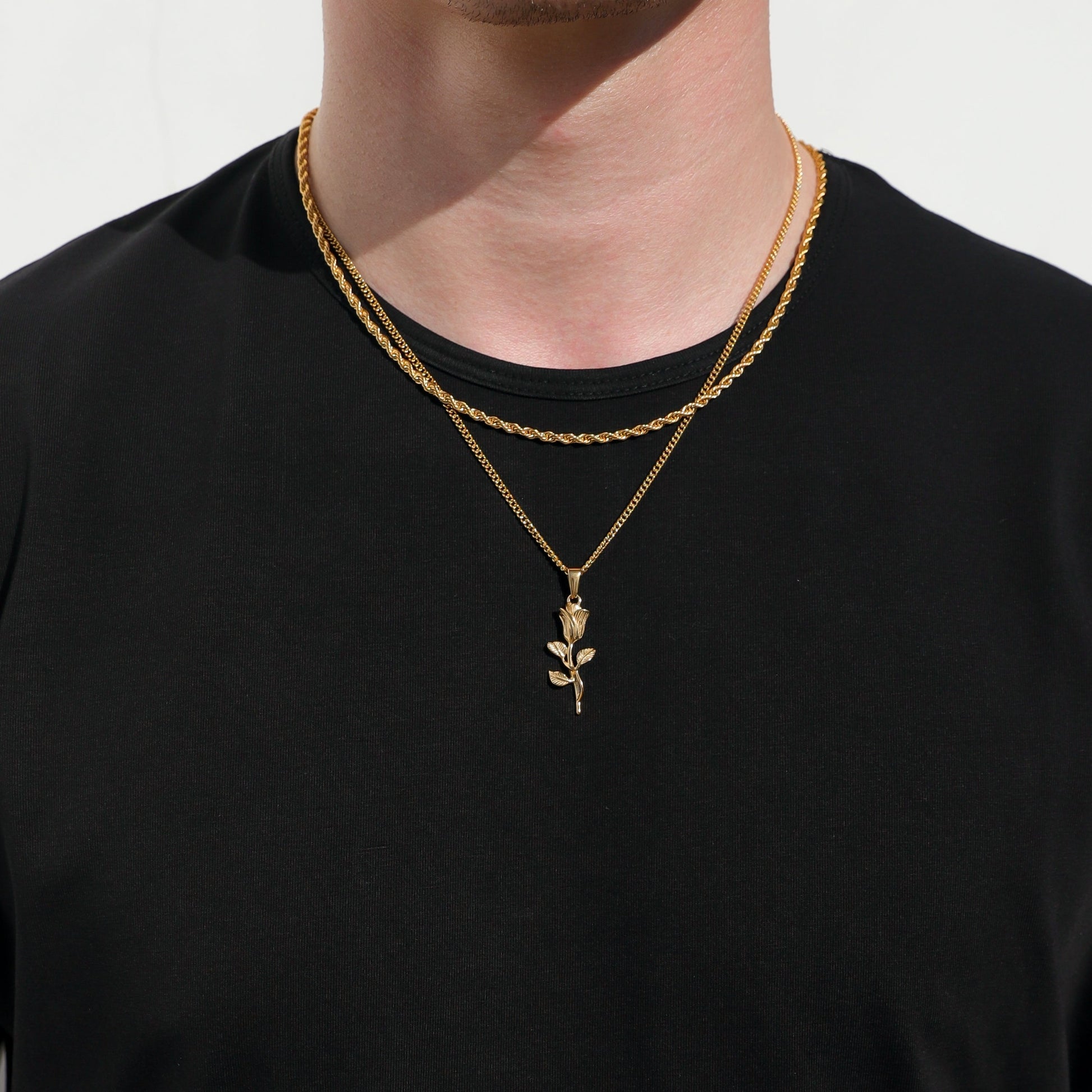 Our Rose Flower necklace and Rope Chain are made from Premium quality 316L stainless steel. This allows the pendant and chain to be water and sweat resistant. This chain can be worn on its own as a statement or be layered with other chains from our shop.