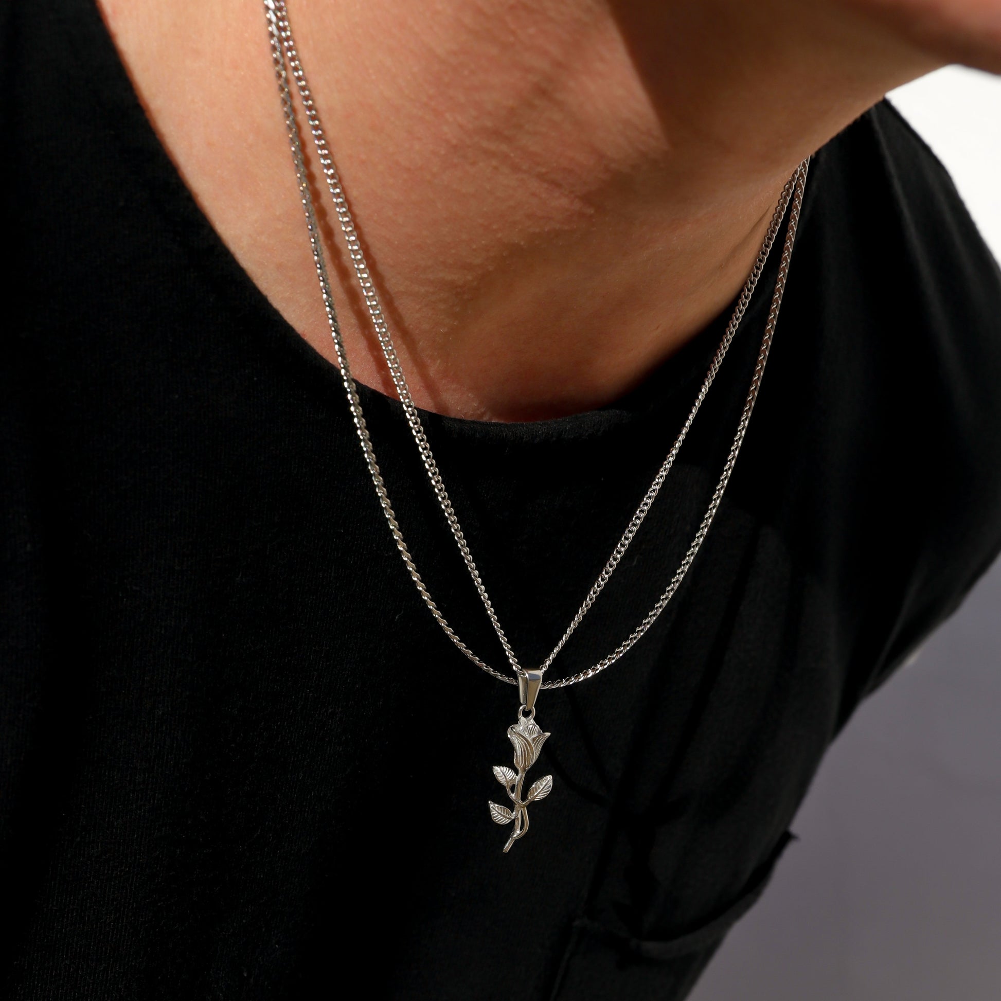 Our Rose Flower necklace and Cuban Link Chain are made from Premium quality 316L stainless steel. This allows the pendant and chain to be water and sweat resistant. This chain can be worn on its own as a statement or be layered with other chains from our shop.