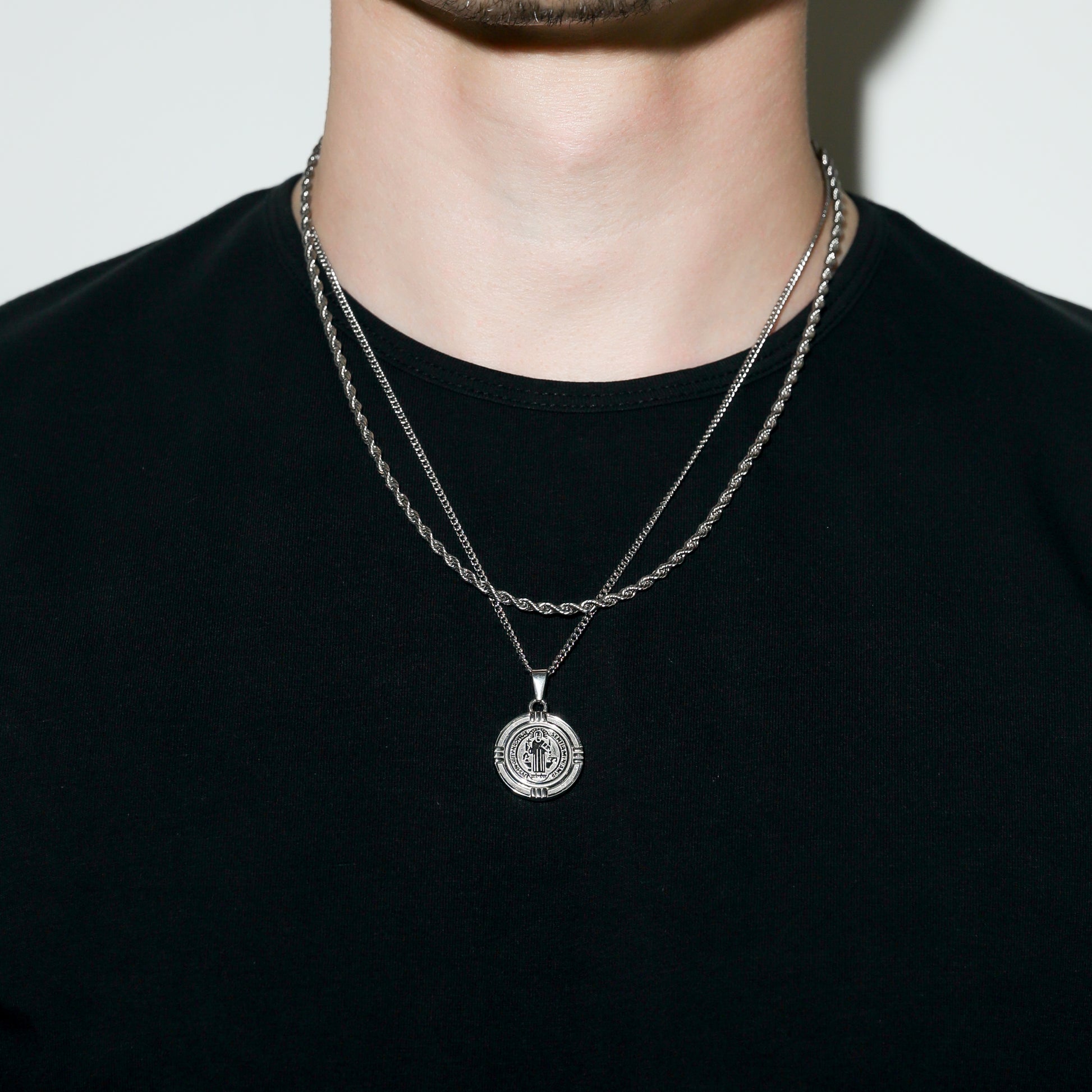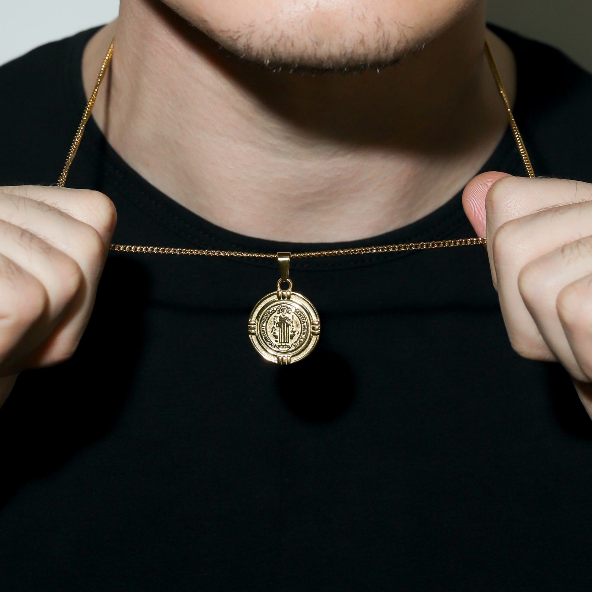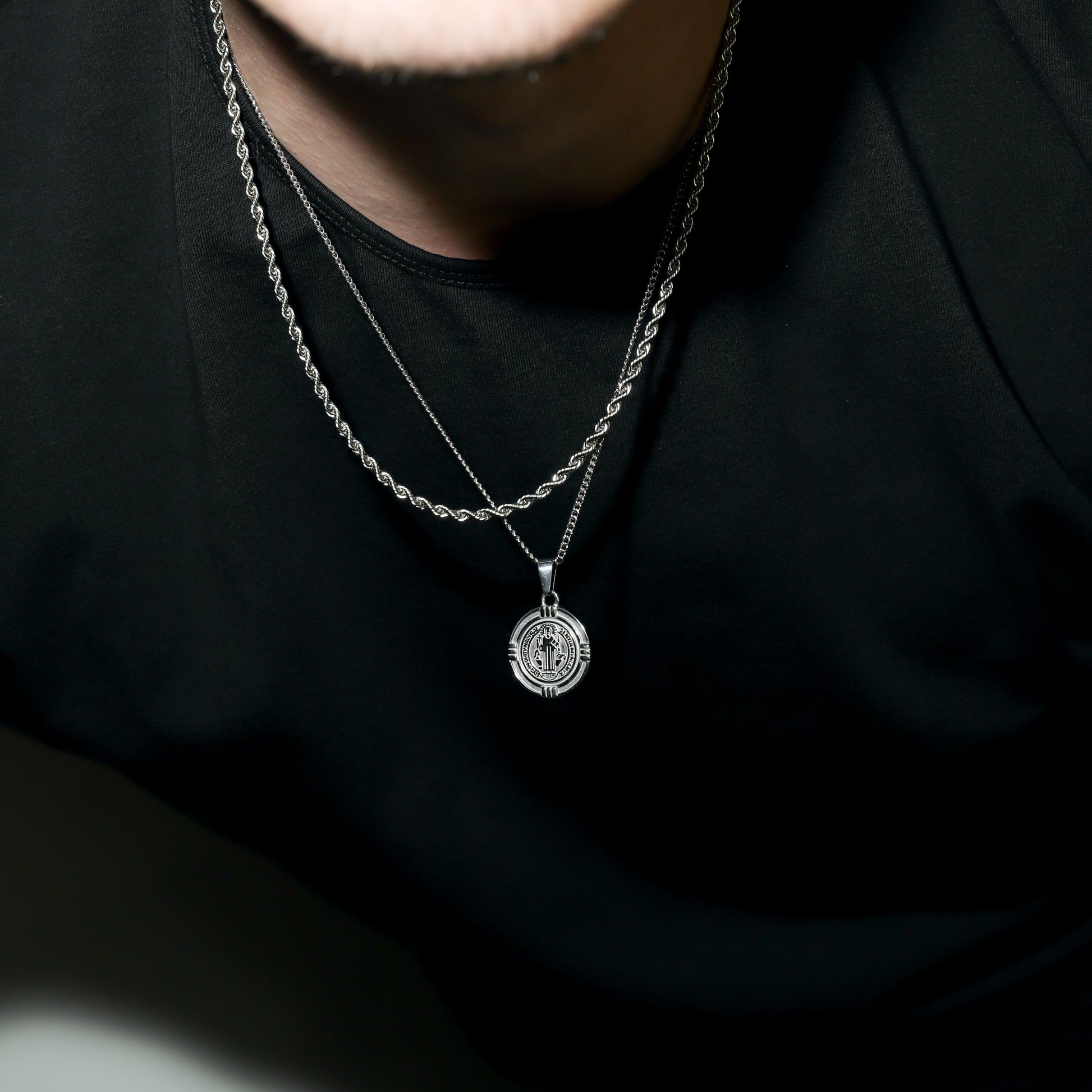 Our St. Benedict pendant/medal is made from Premium quality 316L stainless steel. This allows the pendant and chain to be water and sweat resistant. This chain can be worn on its own as a statement or be layered with other chains from our shop.