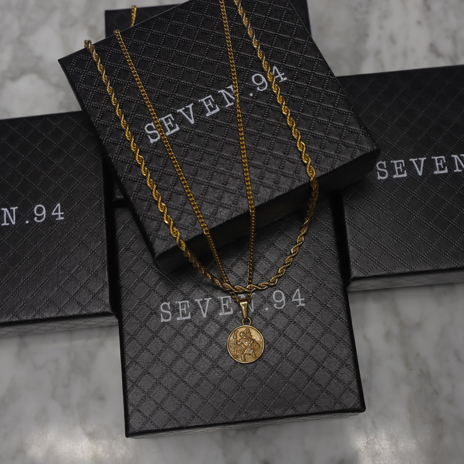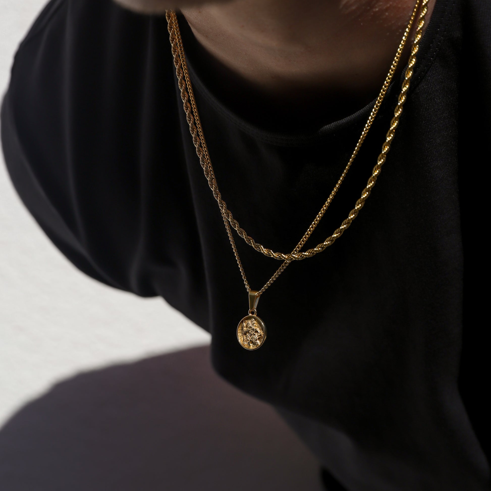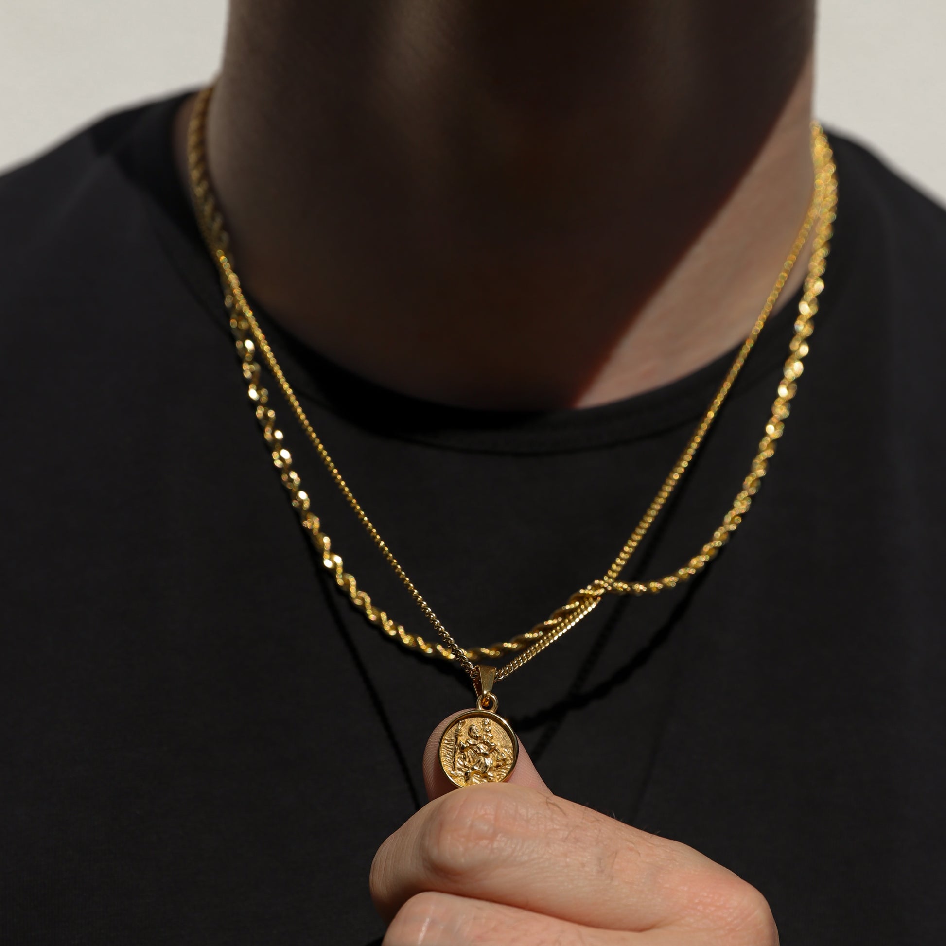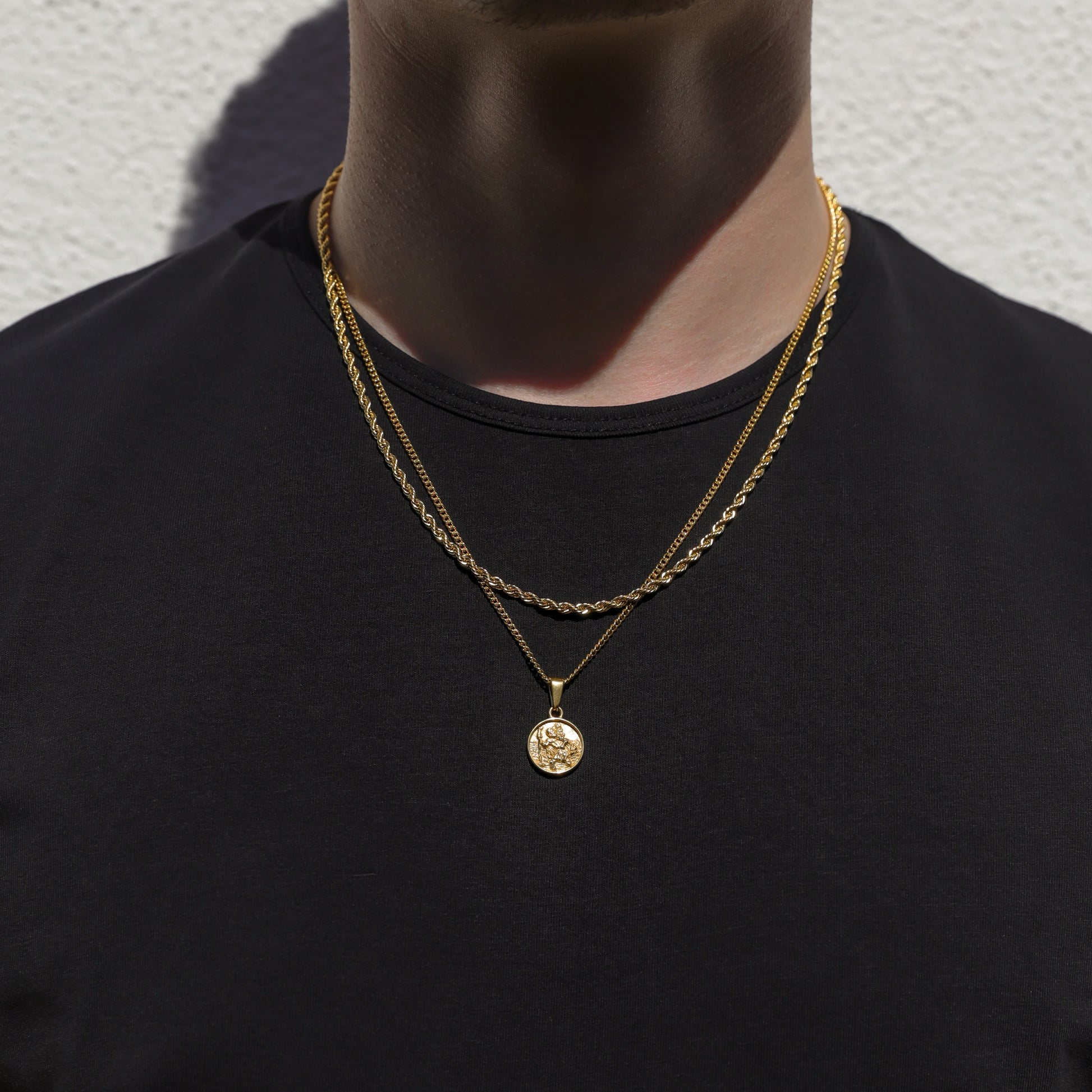 Our St. Christopher pendant/medal and Rope Chain are made from Premium quality 316L stainless steel. This allows the pendant and chain to be water and sweat resistant. This chain can be worn on its own as a statement or be layered with other chains from our shop.