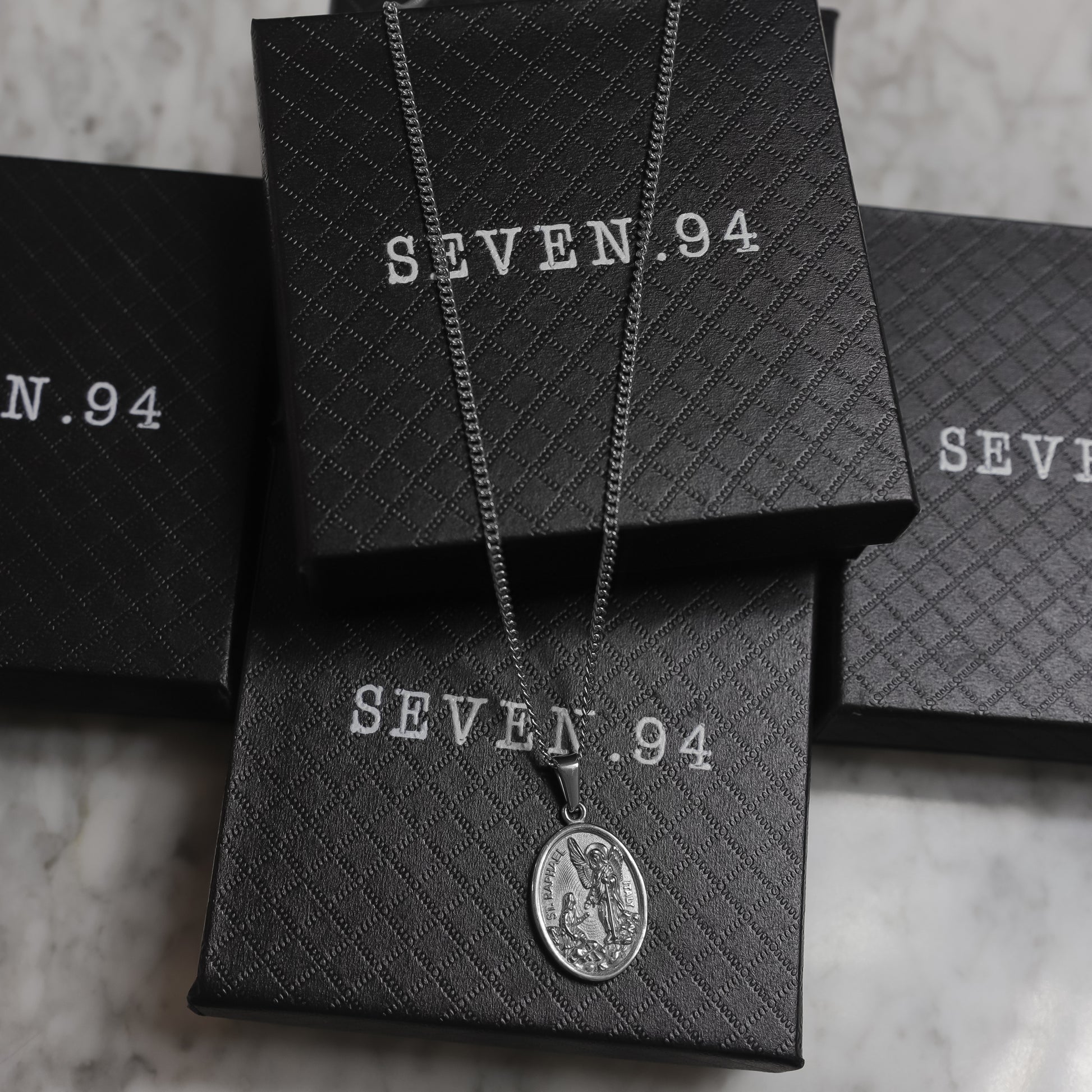 Our St. Raphael pendant/medal is made from Premium quality 316L stainless steel. This allows the pendant and chain to be water and sweat resistant. This chain can be worn on its own as a statement or be layered with other chains from our shop.