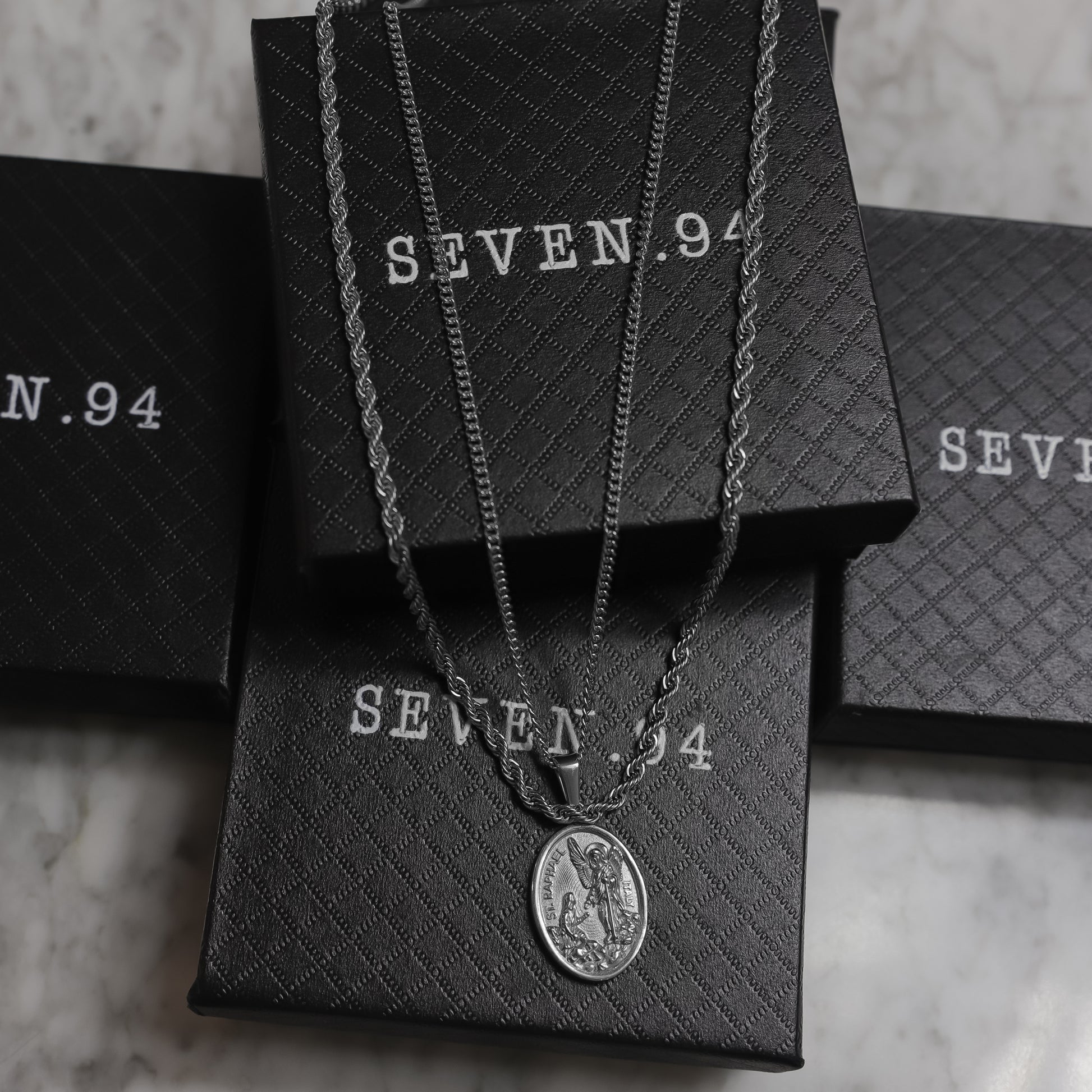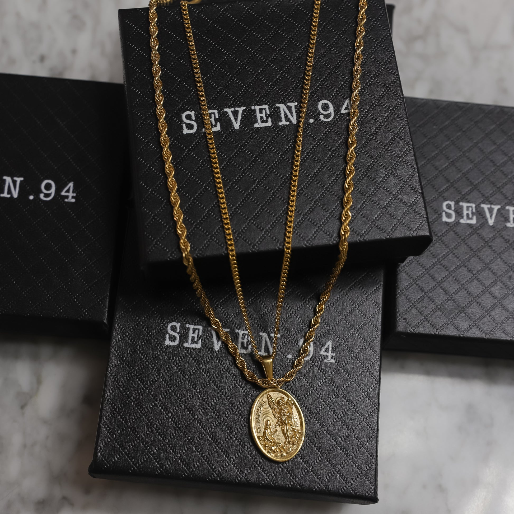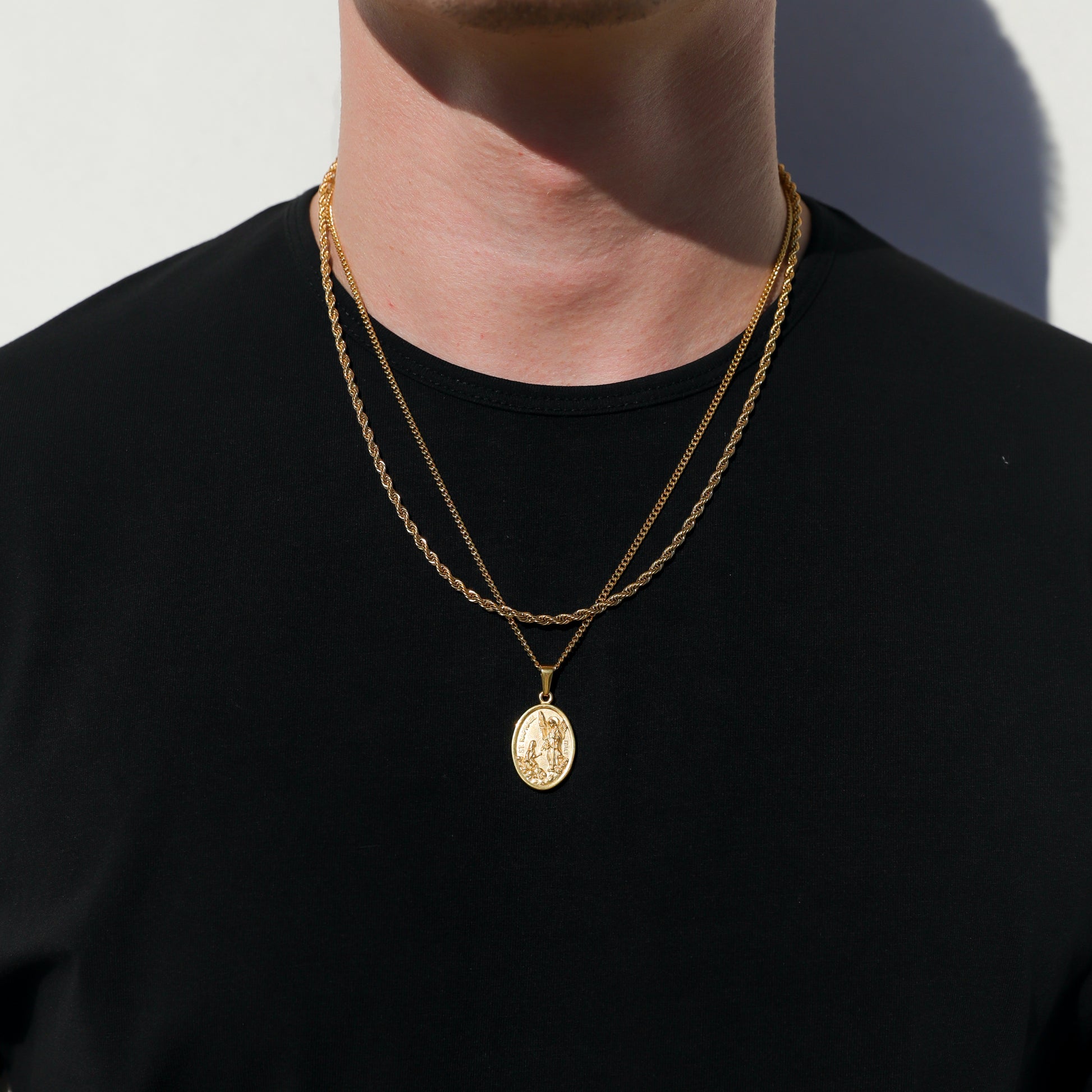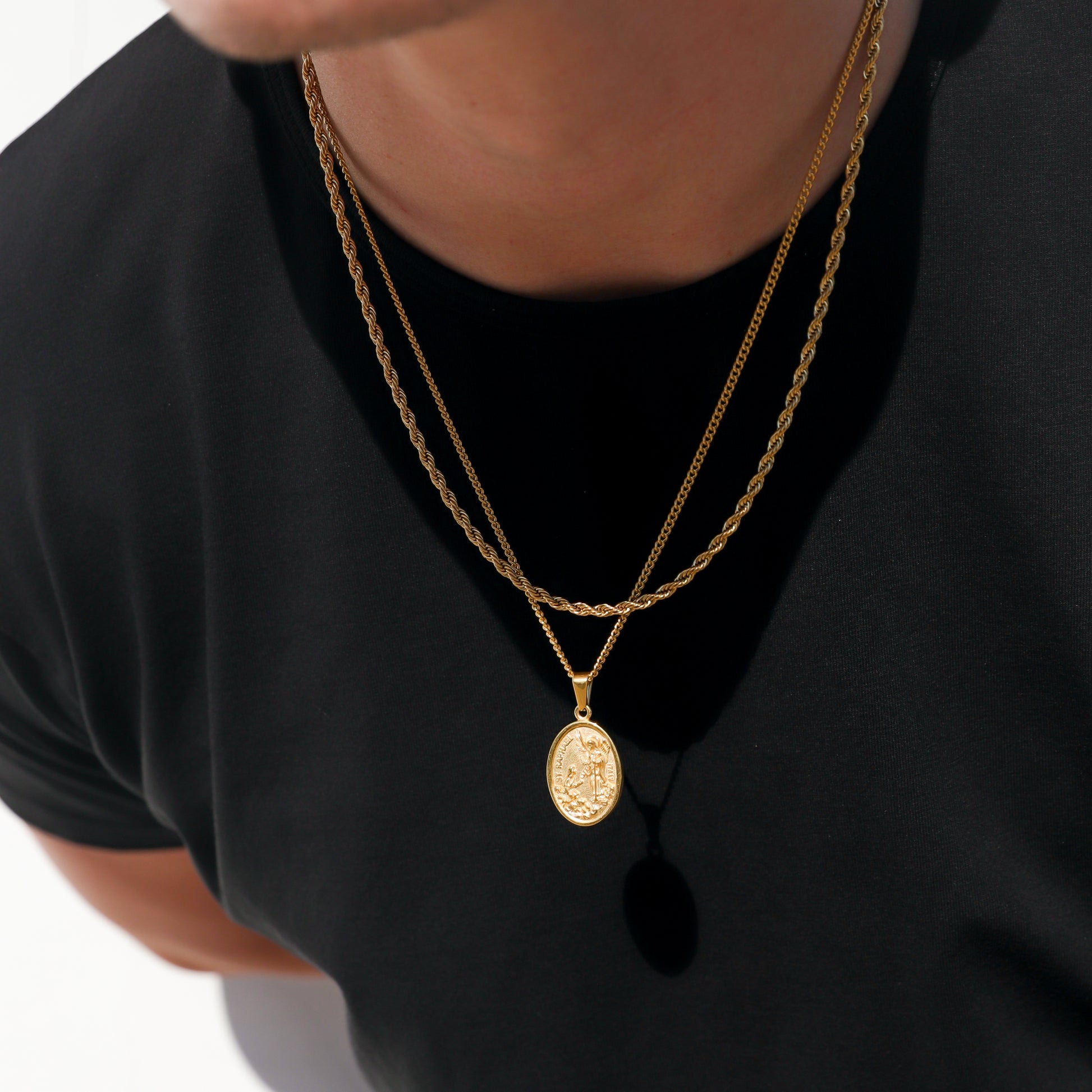 Our Saint Raphael Pendant necklace and Rope Chain are made from Premium quality 316L stainless steel. This allows the pendant and chain to be water and sweat resistant. This chain can be worn on its own as a statement or be layered with other chains from our shop.