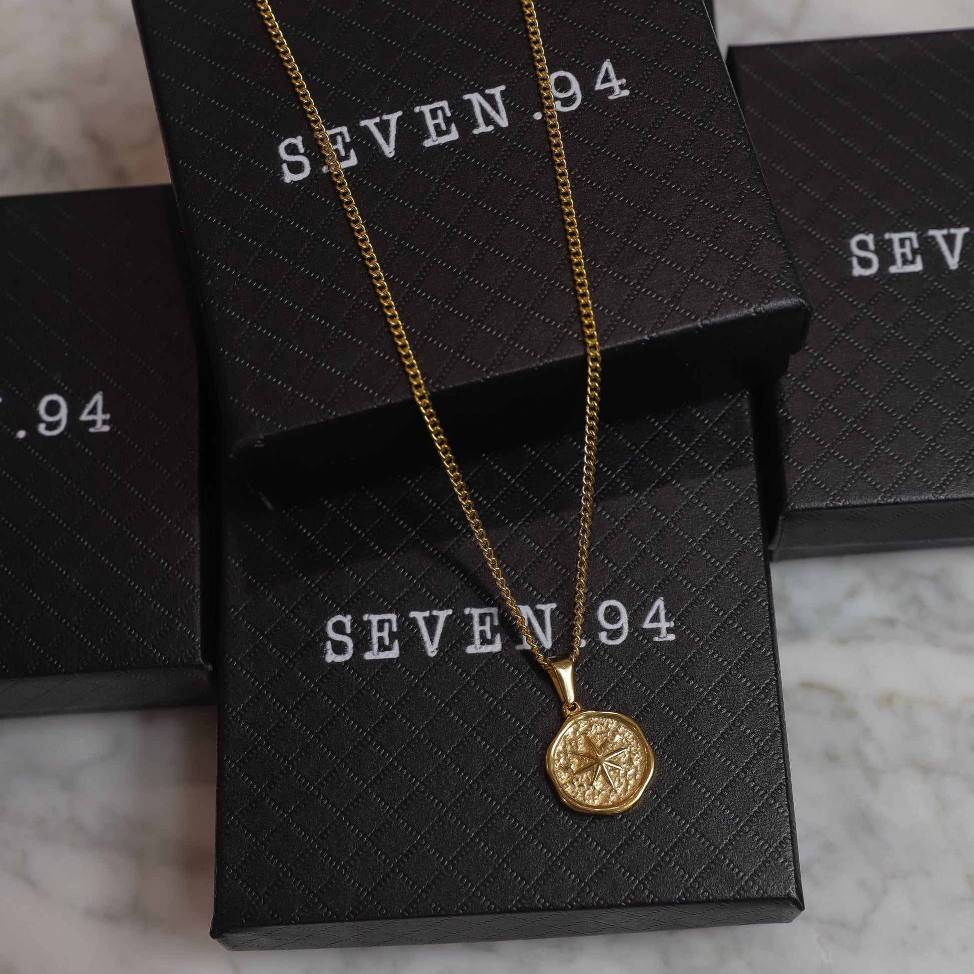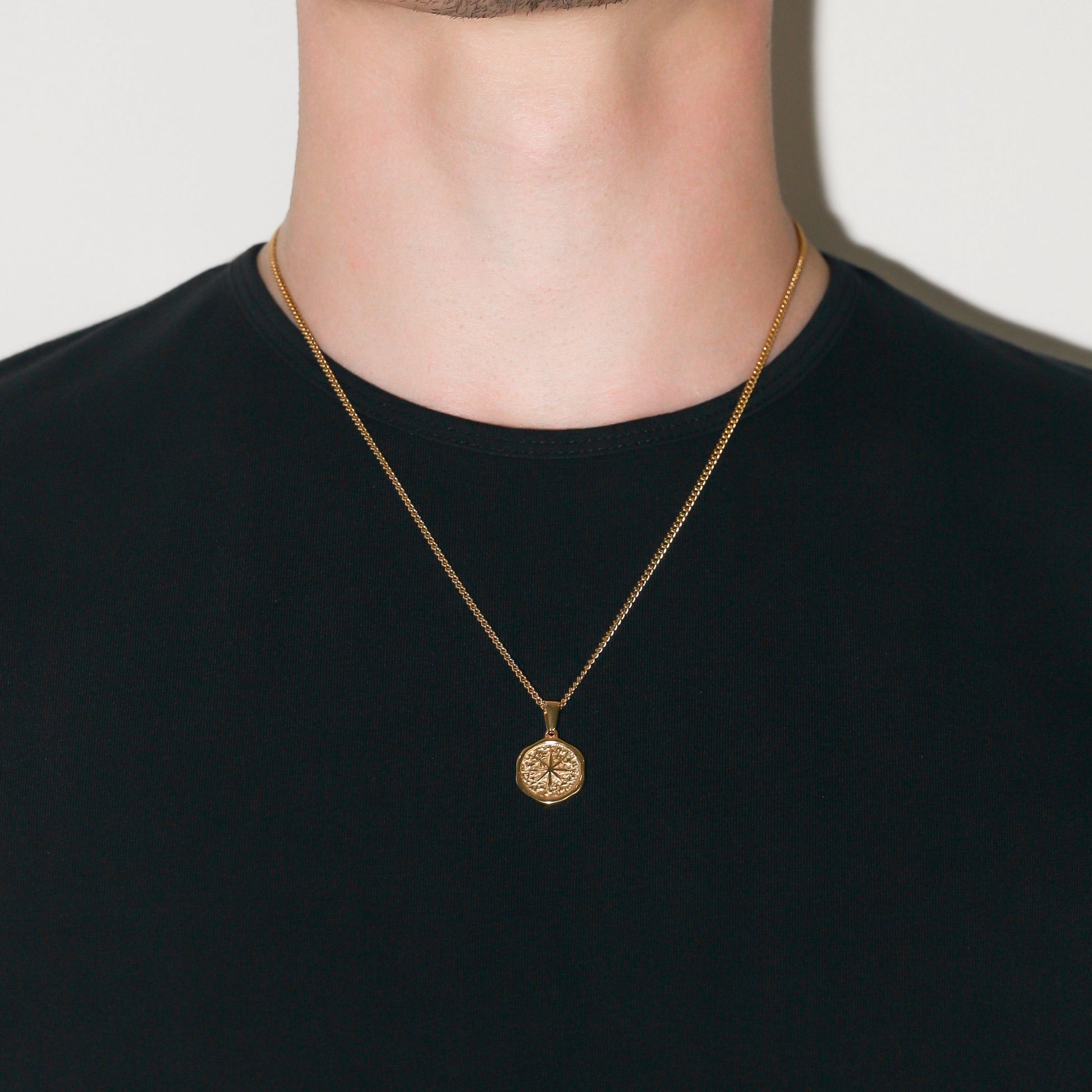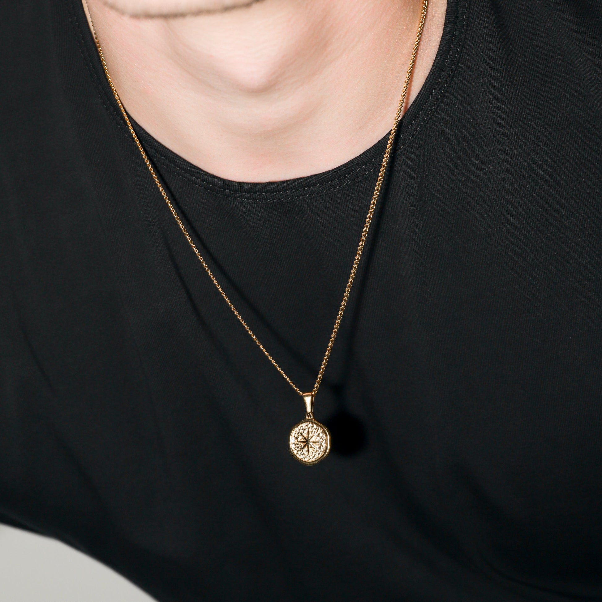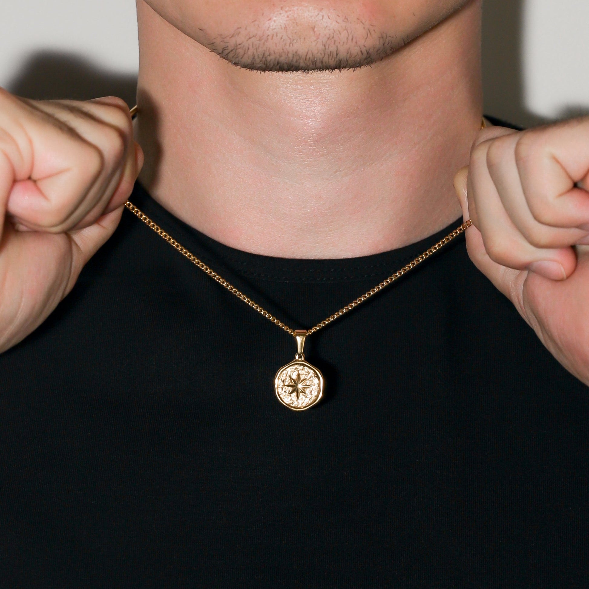 Our Hammered North Star Compass necklace is made from Premium quality 316L stainless steel. This allows the pendant and chain to be water and sweat resistant. This chain can be worn on its own as a statement or be layered with other chains from our shop.