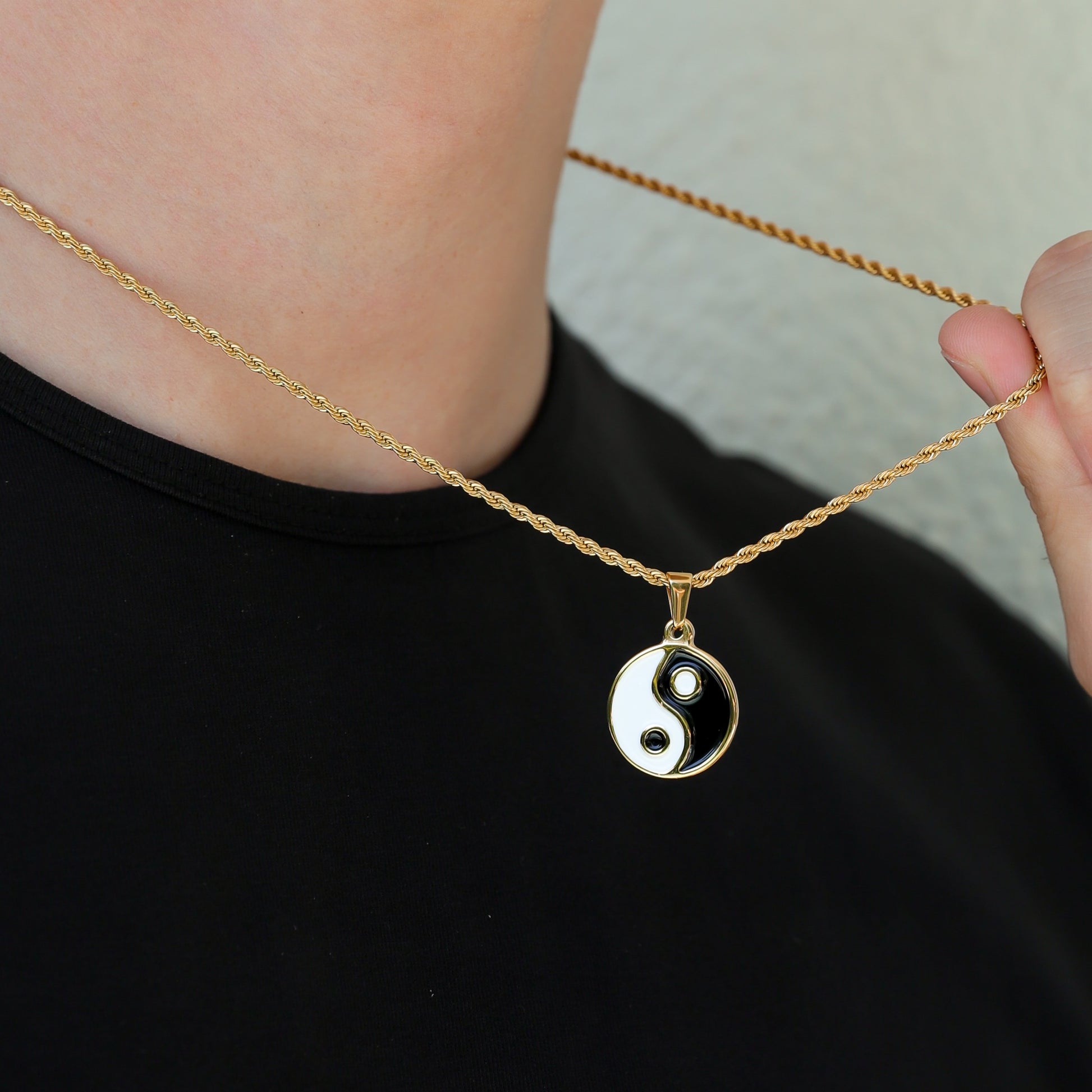 Our Yin Yang Pendant necklace is made from Premium quality 316L stainless steel. This allows the pendant and chain to be water and sweat resistant. This chain can be worn on its own as a statement or be layered with other chains from our shop.