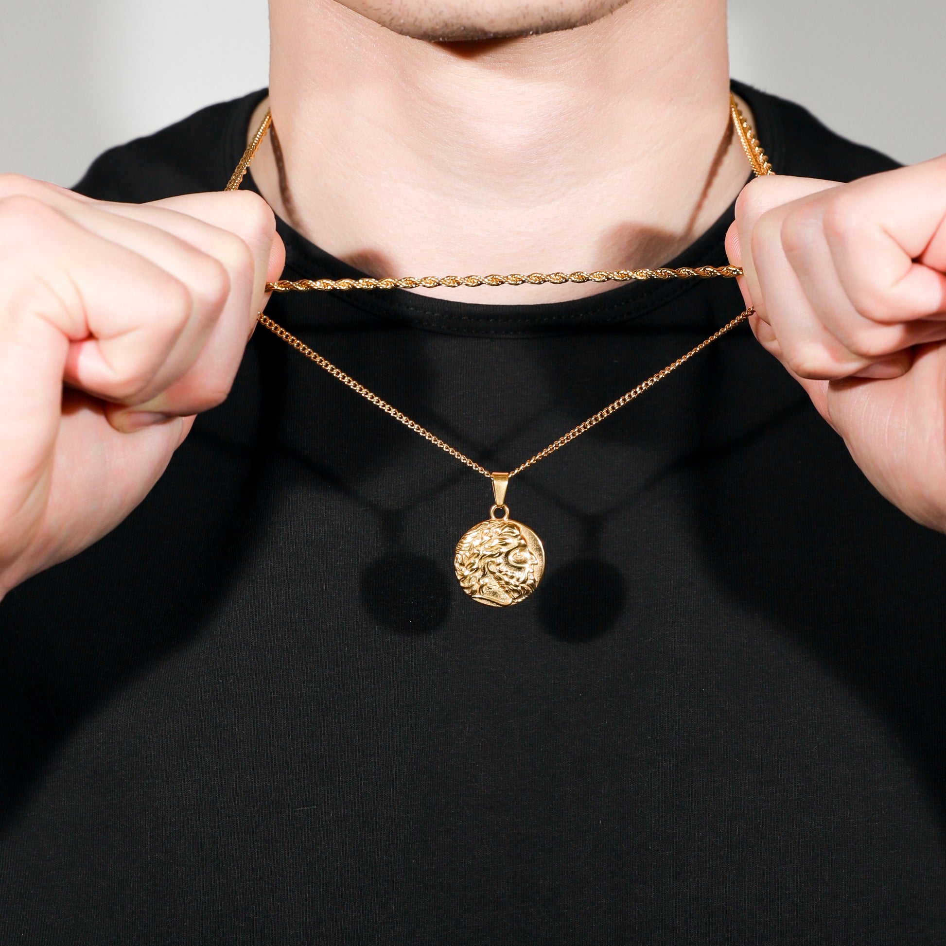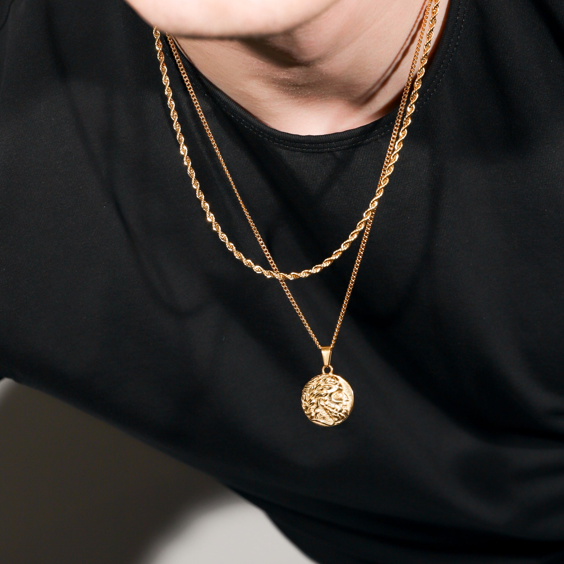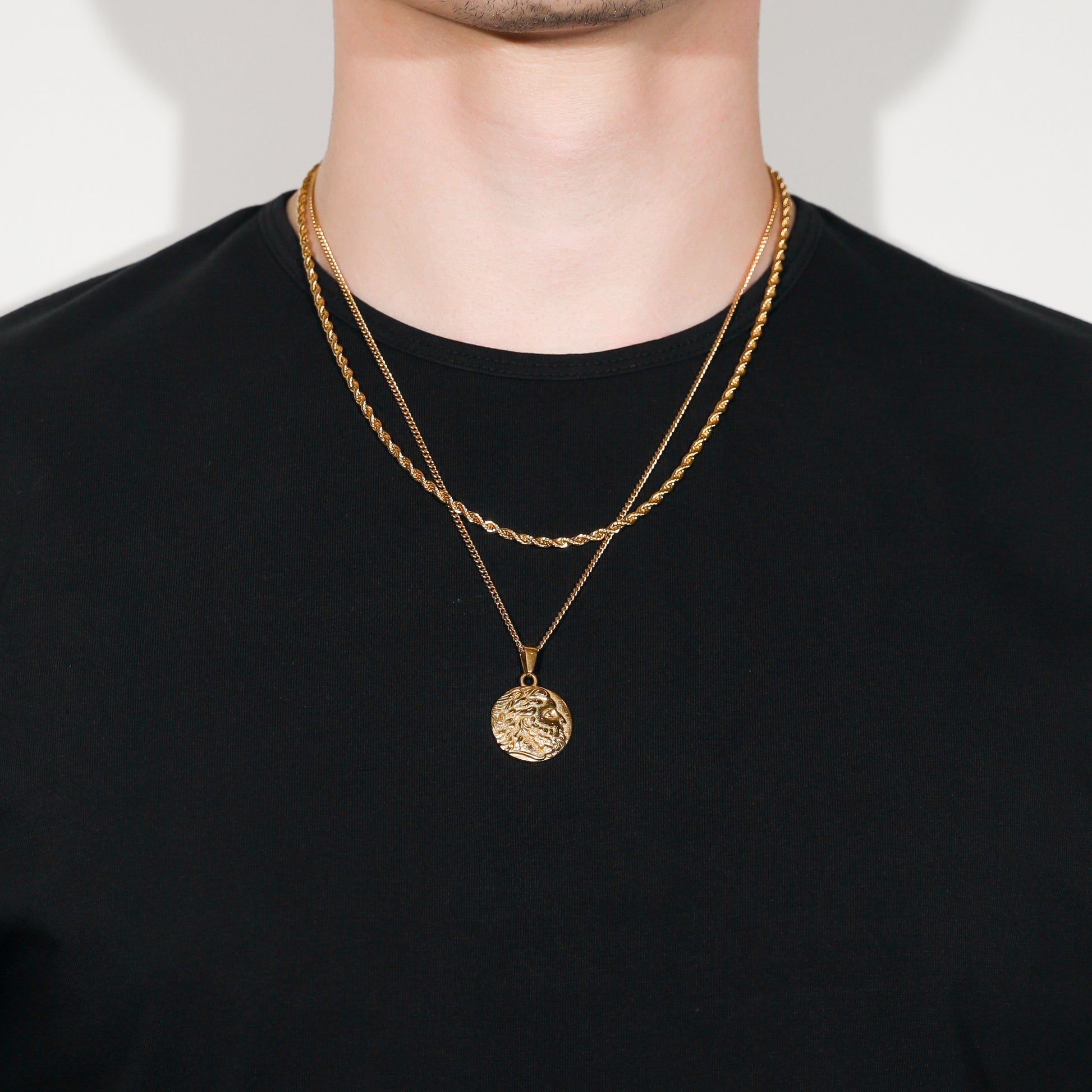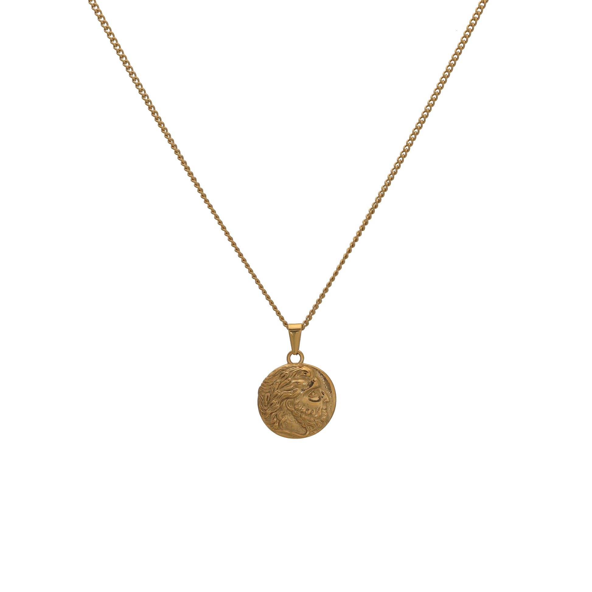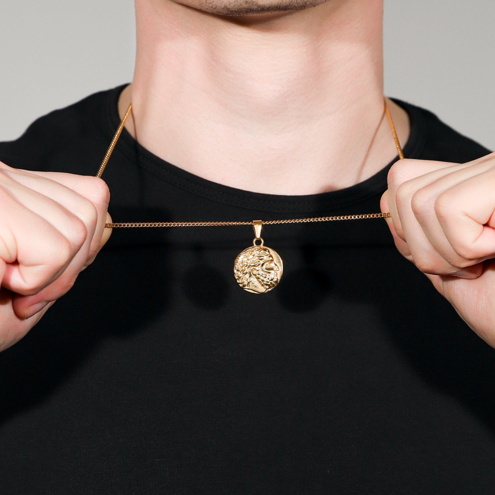 Our Zeus Coin necklace is made from Premium quality 316L stainless steel. This allows the pendant and chain to be water and sweat resistant.